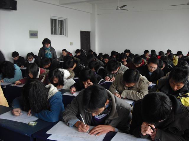 1212上午,纺织服装系在D413多媒体教室举行第一届“大金杯”化学实验技能大赛知识测试(笔试、初赛),由此,纺织服装系第一届“大金杯”化学实验技能大赛正式启动。系领导余新霞、刘金斌、李长龙等亲临比赛现场。余新霞在赛前作了重要讲话,希望同学们珍惜机会,认真参赛,锻炼能力,提高素质。