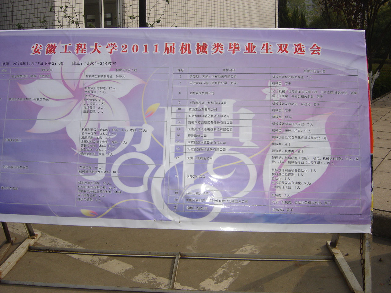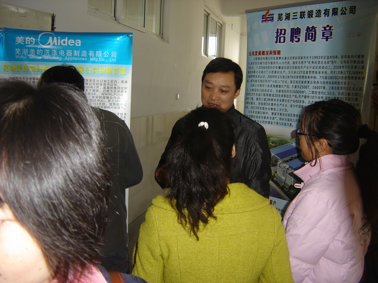 本次双选会场面非常火热,机械与汽车工程学院与机电学院机械类毕业生绝大多数前来应聘。有18家企业现场招聘,提供就业岗位200多个,覆盖机械制造、材料成型、汽车、机电、土木工程以及英语、行政管理、自动化等专业。招聘单位分别来自上海、南京、杭州、马鞍山、铜陵、安庆等城市以及芜湖本地的企业,其中不乏一些知名企业。同学们信心十足,从容洽谈,学院分管领导和辅导员在现场开展指导、协调与服务工作,也有许多非毕业班学生到场观摩和咨询,招聘现场井然有序。