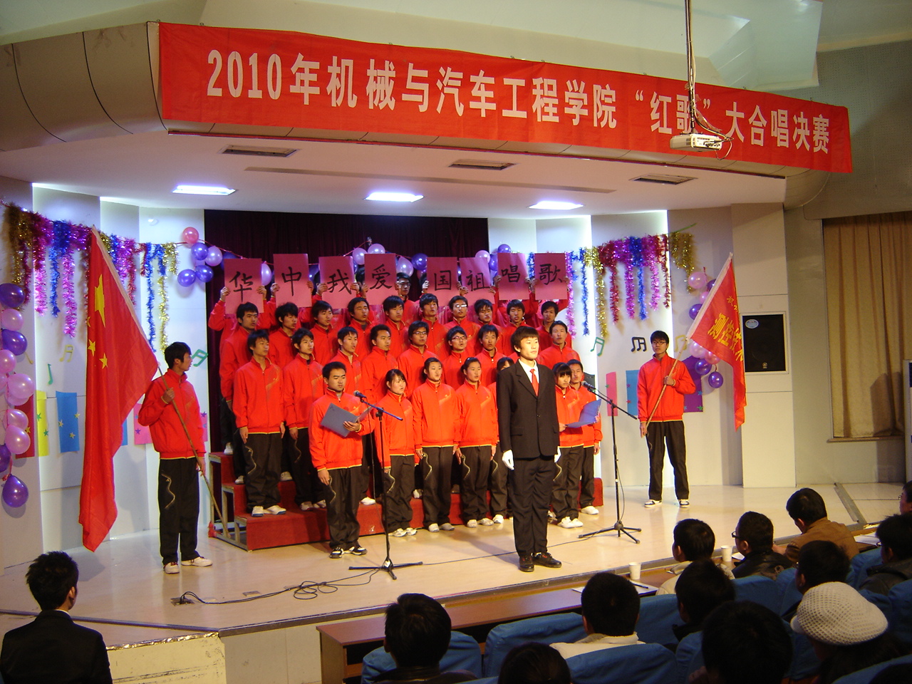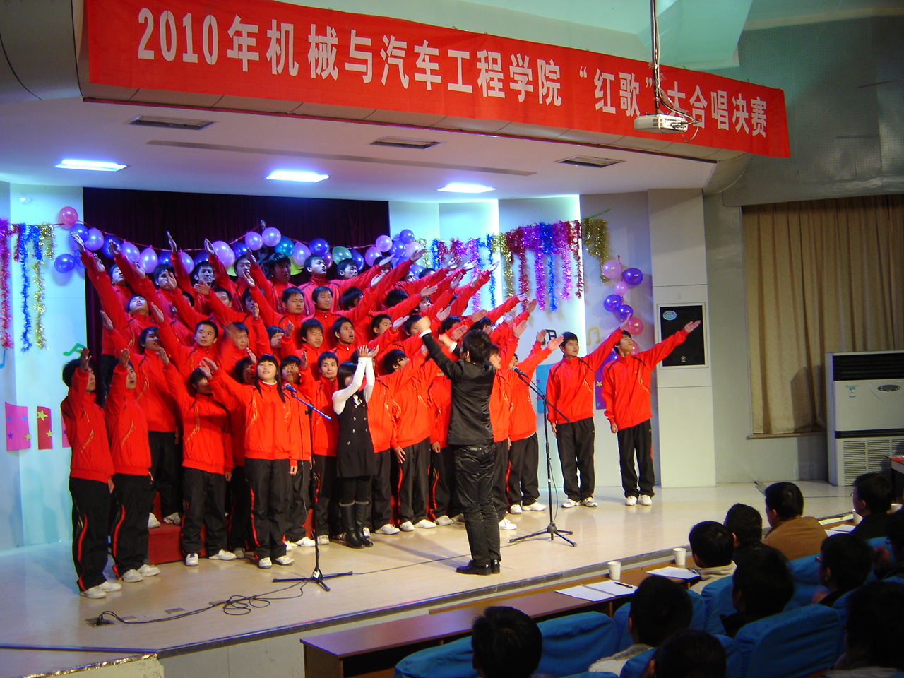 为弘扬革命传统,积极倡导集体主义精神,推进创先争优活动新高潮,并丰富新生的课余生活,让新生适应大学生活,机械与汽车工程学院特举办了“创先争优,红歌比赛”。12月17日晚上,比赛决赛在学术报告厅隆重举行。出席此次决赛的嘉宾有机械与汽车工程学院党委副书记邓英扣,团委书记黄炜,新生辅导员等。