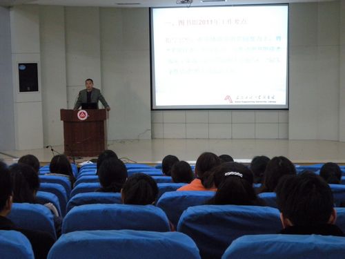 3月17,图书馆在学术报告厅召开全体馆员大会,馆长徐军作了“图书馆2011年工作要点的工作报告,部署图书馆2011年工作。