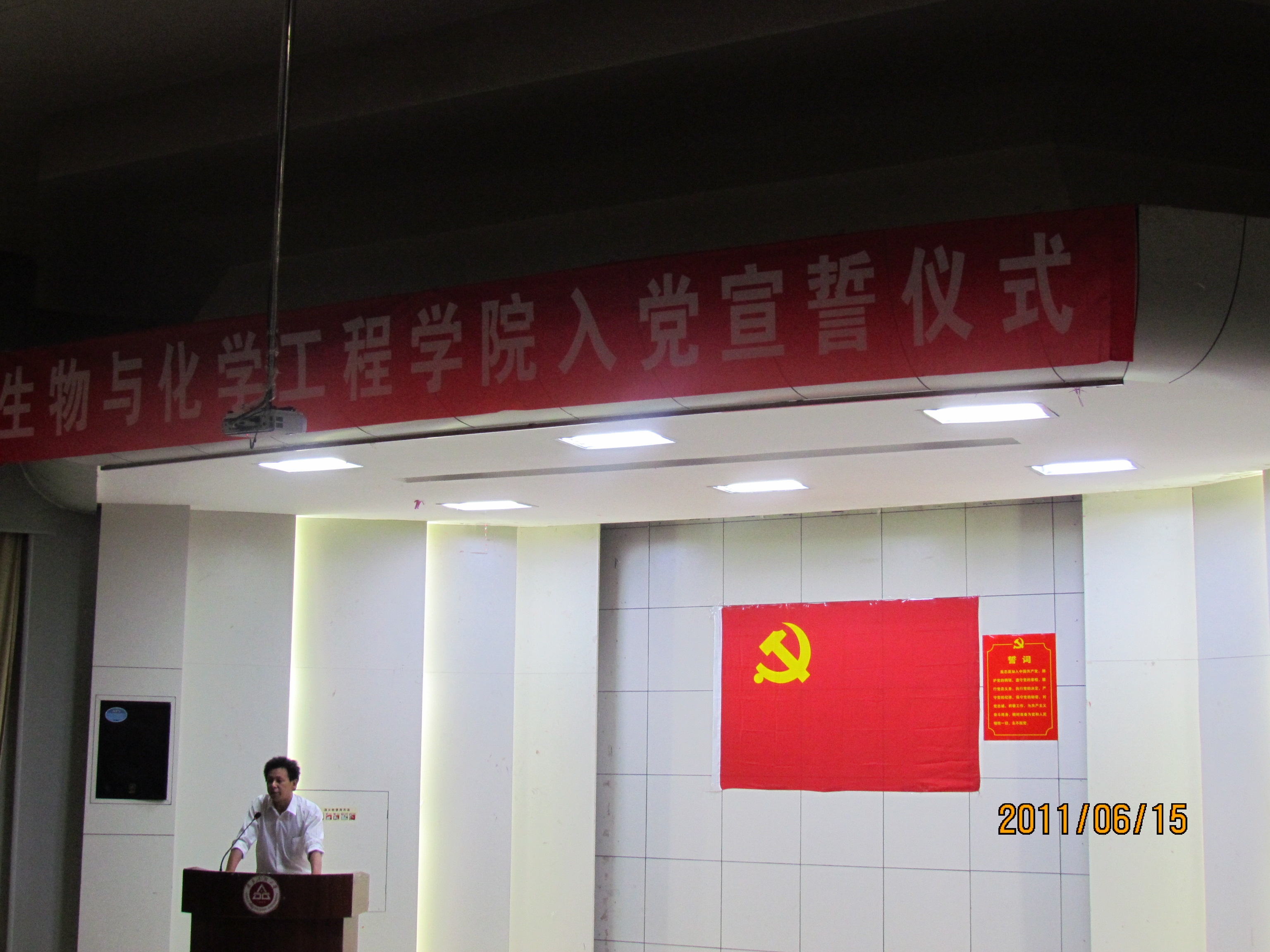 入党誓词大会在庄严的《国际歌》歌声中拉开序幕,首先由院党委书记王弘同志致词,代表学院党委对118名新党员表示热烈的欢迎和祝贺。他说,这是我们生化学院党委政治生活中的一件大事,是每一个新党员的一件大事。新党员入党宣誓是对预备党员进行教育的一种形式,体现了入党的庄重性和严肃性,激励新党员牢记党的誓言,更加严格地要求自己。老党员面对党旗,重温入党誓词,回想当年入党时的思想激情和不懈追求,回想入党宣誓时的庄严承诺和奋斗决心,不断增强我们的光荣感、责任感、使命感,永葆共产党人的革命热情。