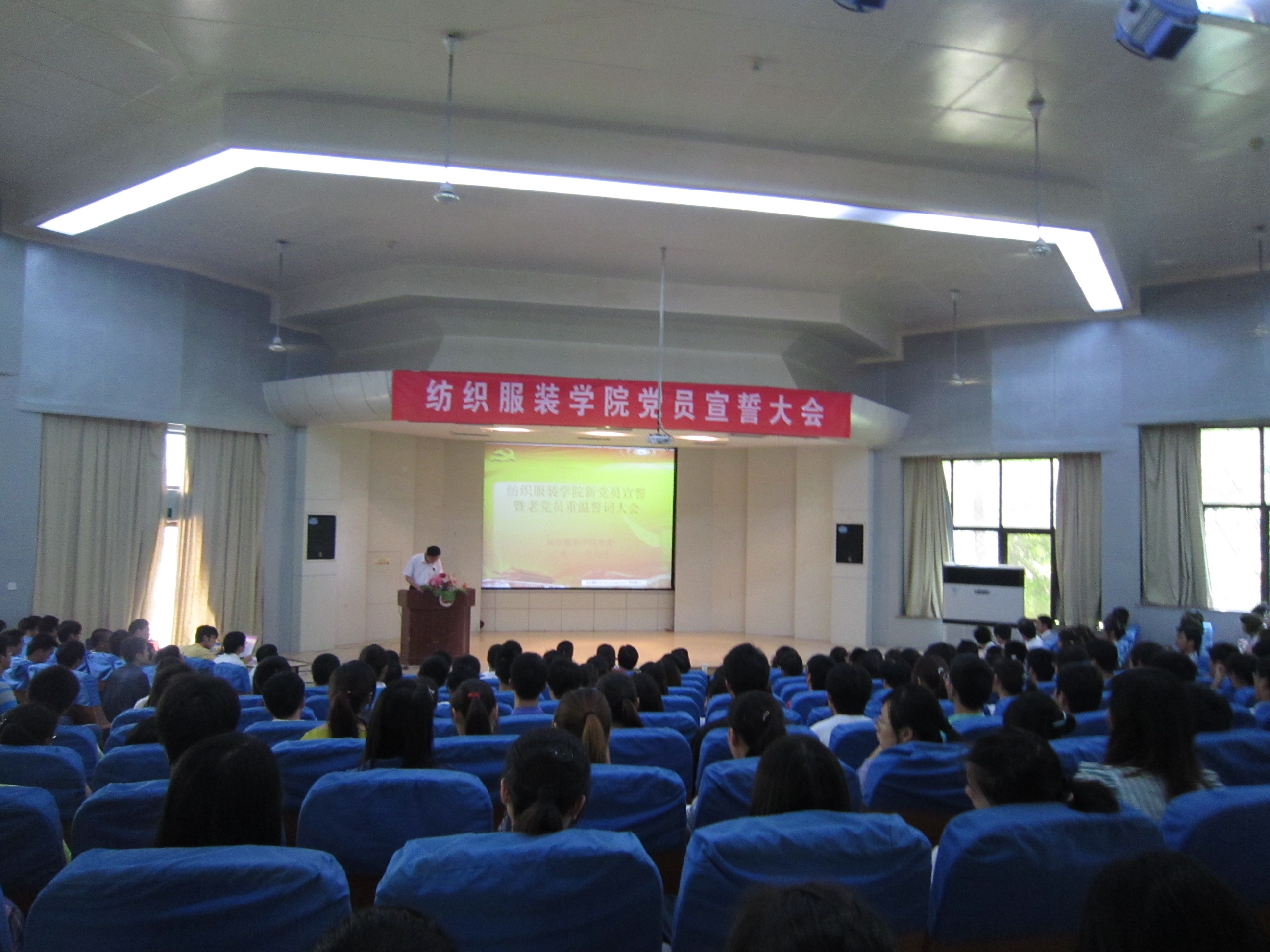 6月27上午,纺织服装学院党委在校学术报告厅隆重举行新党员入党宣誓暨老党员重温入党誓词大会。有教工和学生计264名党员同志,以及74名入党积极分子参加了大会。院党委书记余新霞、副书记刘金斌、副院长李长龙及各党支部书记出席了大会,大会由刘金斌副书记主持。