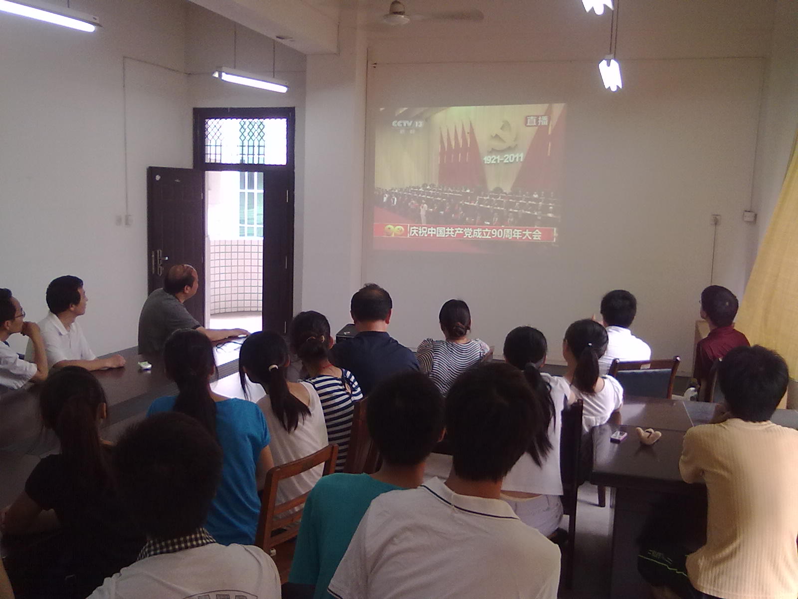 7月1日上午,数理学院党委组织中心组成员、党员干部和部分师生在3J408通过网络集中收看大会现场直播。同时,对于有监考、考试任务的师生也通过飞信通知他们晚上注意收听、收看。