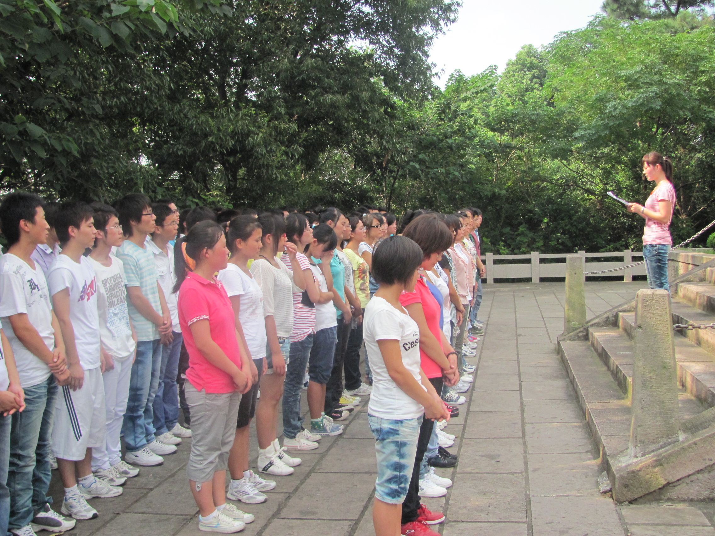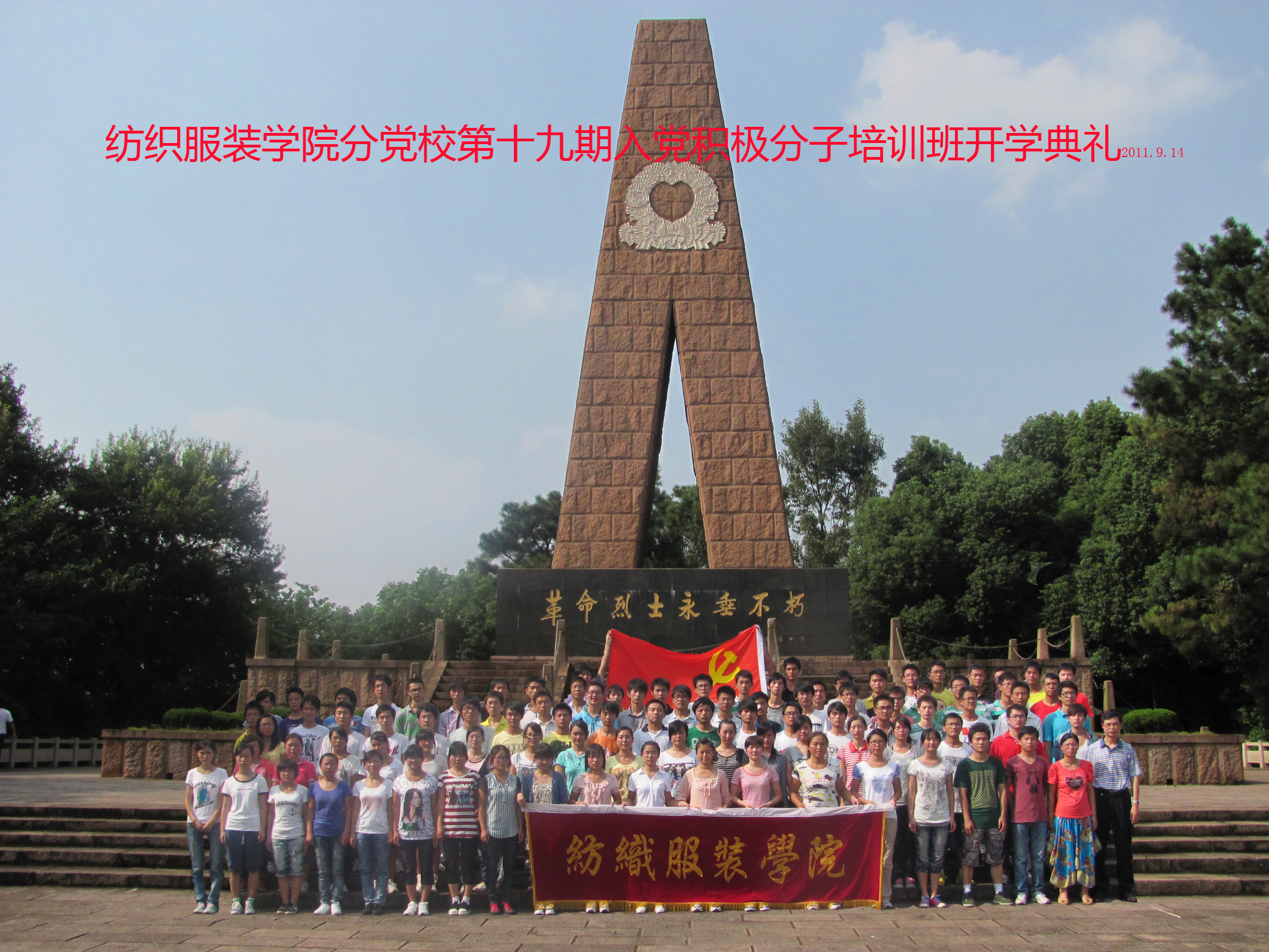 在开学典礼上,全体人员面对烈士纪念碑肃立,默哀一分钟,以缅怀烈士。紧接着,刘金斌作开学典礼致辞,他首先对同学们能够接受党的教育表示了热烈的祝贺,希望全体同学要珍惜和重视这次学习的机会,努力学好党的基本知识和基本理论,不断提升思想政治素养;强调了组织和思想上入党的统一性,要求学员端正自己的入党动机,坚定自己对党的信念。接着,党校学员代表服工091的夏冰洁同学发言,她从生活感悟出发,表达了对党的憧憬,并勉励自己及与会学员要努力提升和改造自己,早日站在党旗下。最后,学员们集体参观芜湖烈士纪念馆,对芜湖地区百年内发生的重大历史事件以及党在革命中的重要作用有了更具体深入的了解。