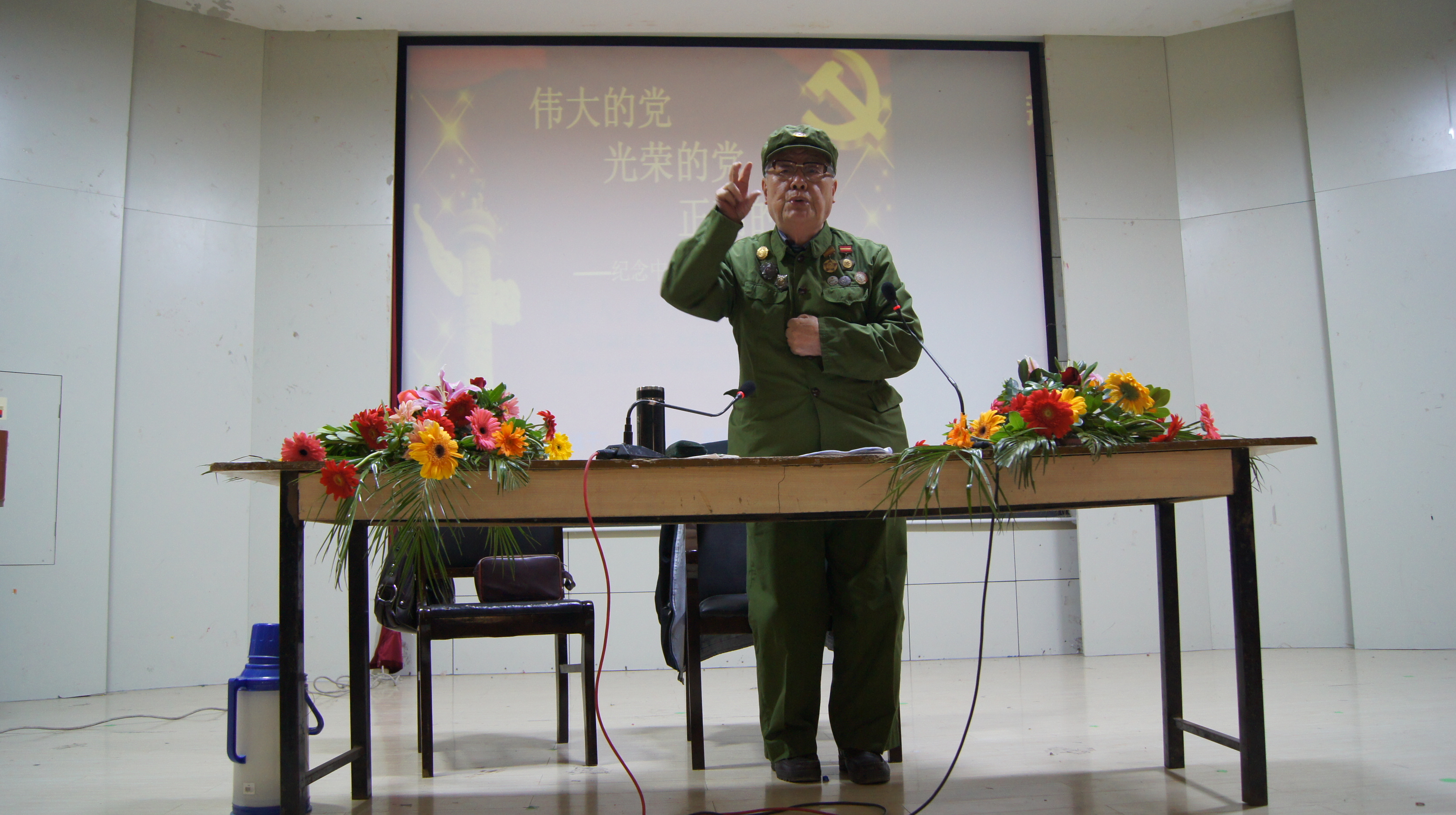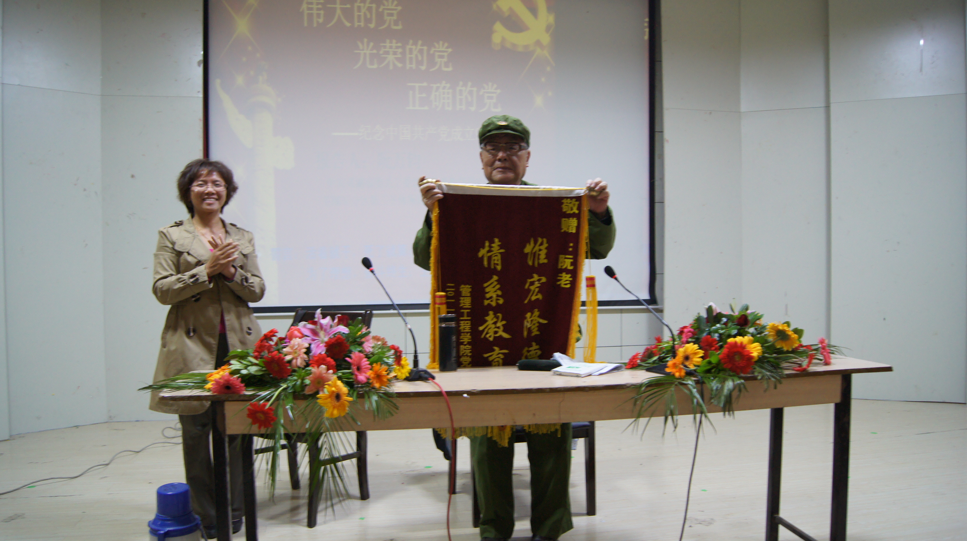 为提升学生党员的党性修养,加强学生党员队伍建设,切实践行科学发展观,建设学习型党的基层组织,管理工程学院党委特邀中共芜湖市委关心下一代工作委员会思想教育报告团副团长、芜湖市军区第三干休所离休干部、新四军老战士阮万钧同志于2011年10月19日下午2:30在校学术报告厅进行主题为“伟大的党 光荣的党正确的党”的报告。此次报告会由我院学生一支部书记黄桂琴主持。此外,莅临报告会的还有芜湖市党史研究会龙科长、管理工程学院团委书记徐晓平和党校班主任何惠研。管理工程学院全体学生党员和入党积极分子共302人聆听了此次报告会。 在主持人对阮老进行简单介绍后,报告会正式开始。阮老用自身的革命经历,讲述了革命先烈的光辉事迹,展现了八路军、新四军战士为革命事业甘愿抛头颅、洒热血的革命精神和伟大崇高的革命主义坚定立场。他以一个个鲜活的事迹感染着在场的每一位师生,让全体成员充分了解为什么 “没有共产党就没有新中国”,坚定了共产主义理想与信念。阮老对比了现在与过去,有力地论证着中国共产党是伟大的党、光荣的党、正确的党这一主题。报告会上,阮老就大学生提出了具体的要求和希望:第一,树立崇高的共产主义理想,树立正确的世界观、人生观和价值观;第二,刻苦学习科学文化知识,建设祖国、报效祖国;第三,端正入党动机,早日加入党员的队伍,为党的事业而奋斗;第四,学习邓小平“理论联系实际”的观点,在改造客观世界的同时,要改造自己主观世界。阮老表达了自己对当代大学生殷切的期望。虽已过耄耋之年,但阮老仍然精神矍铄、言辞铿锵有力,充分展现了那一代人崇高的共产党员气节和为共产主义奋斗终身的信念。整场报告会上,同学们听得专注入神,不时报以热烈的掌声。 最后,党员代表为阮老献上锦旗,表达我院党委对阮老关心下一代教育的感谢之情和对老党员的崇高敬意。至此,持续近两个半小时的报告会在热烈的掌声中圆满结束。