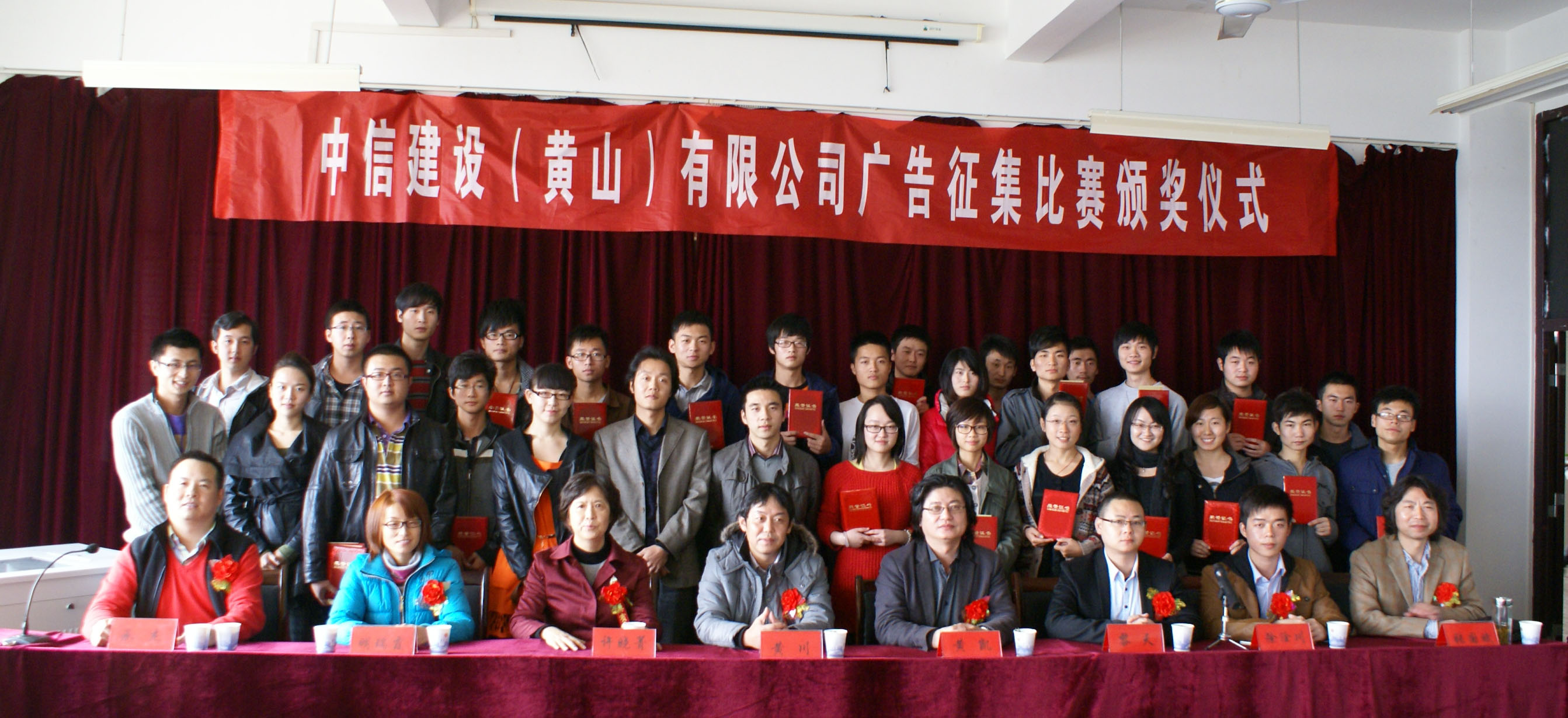 会上,党委书记许晓菁教授对中信建设(黄山)有限公司为我院学子提供的作品创作机会表示感谢,对获奖同学和指导教师表示热烈的祝贺,并高度赞赏了中信建设(黄山)有限公司取得的成就。黄川副总经理代表企业感谢学校、学院对公司企业文化发展,尤其是广告征集活动的大力支持,高度评价了参赛的作品质量,希望能通过各项交流合作活动进一步促进企校之间的互惠双赢。广告系主任张国斌和2009级研究生沈珂分别代表指导教师和获奖学生发言。
