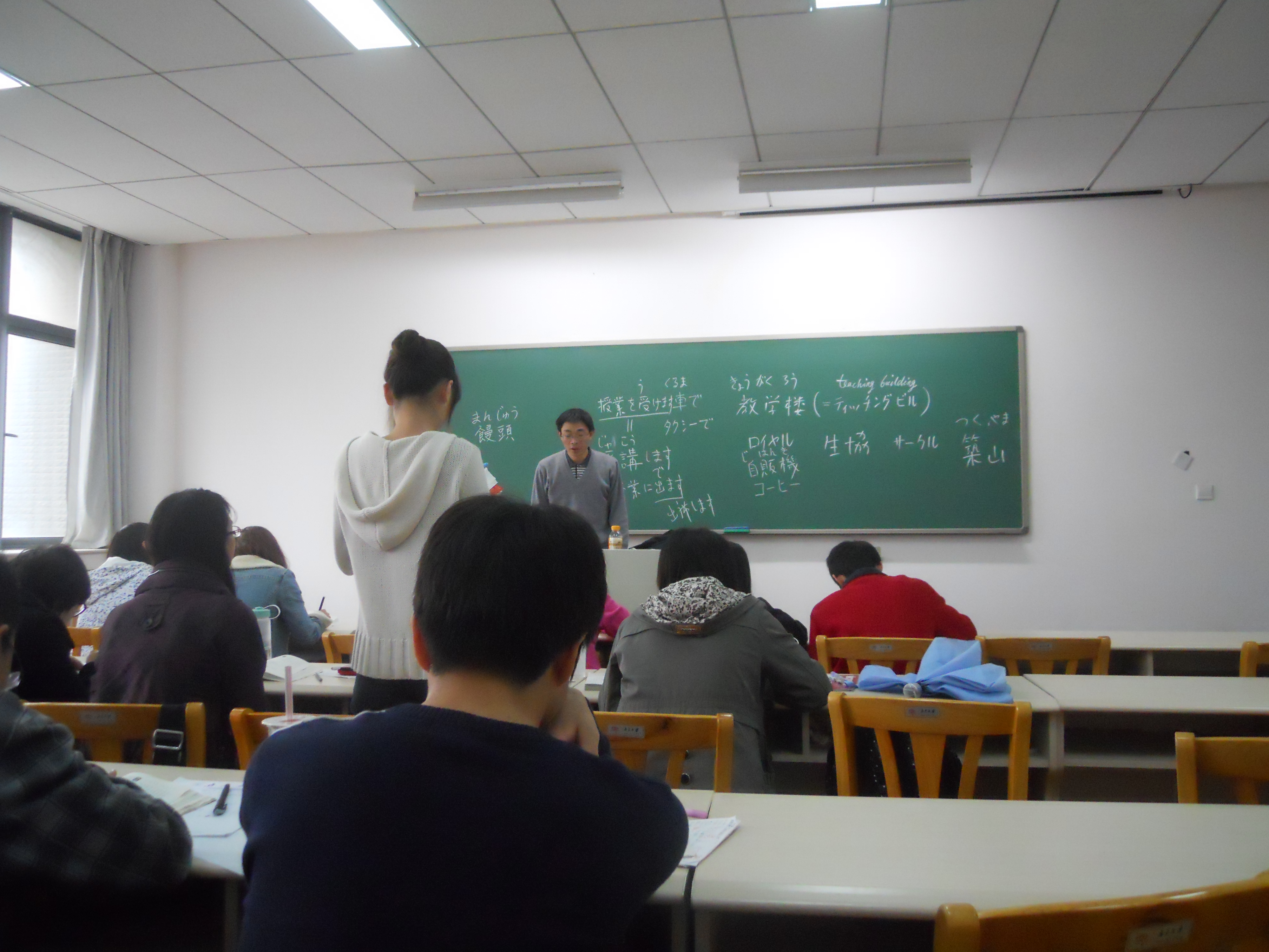 1118上午,全体调研人员南京大学仙林校区观摩了2011新生基础日语的课堂教学。观摩之后,与南大外国语学院日语系主任叶琳教授和部分老师就专业建设和人才培养进行了座谈。叶琳教授对金院长亲自带队表示欢迎与赞许,她指出:南大主要是精英式培养模式,其日语专业主要借助南大的平台,培养学生的国际视野与能力。她表示愿意与我们保持交流,也乐意为我院日语专业建设提供力所能及的支持。