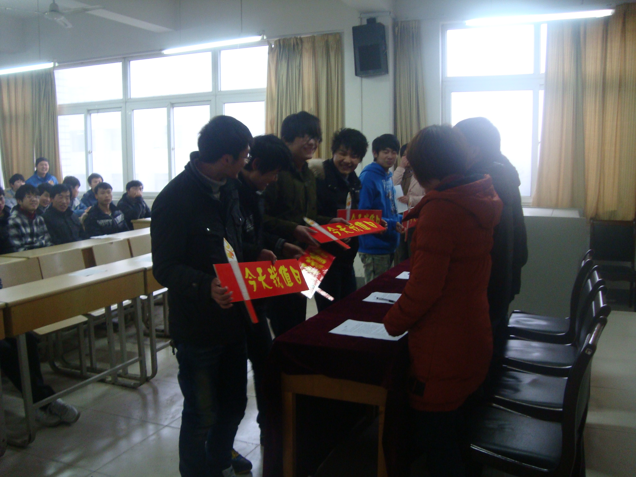 院党委副书记水心宝老师代表学院发表了讲话。他勉励志愿者们,以“三做”理念为指引,从学习生活中的点点滴滴做起,尽自己最大的努力去帮助身边所有需要帮助的人,实实在在的践行雷锋精神,让雷锋的形象通过我们的努力更加高大,更加深入人心。接着,院领导向各个寝室代表颁发“今天我值日”的活动标识牌。最后,院党委书记张开炳老师隆重宣布“数理学院‘今天我值日’—学雷锋系列活动”正式启动。