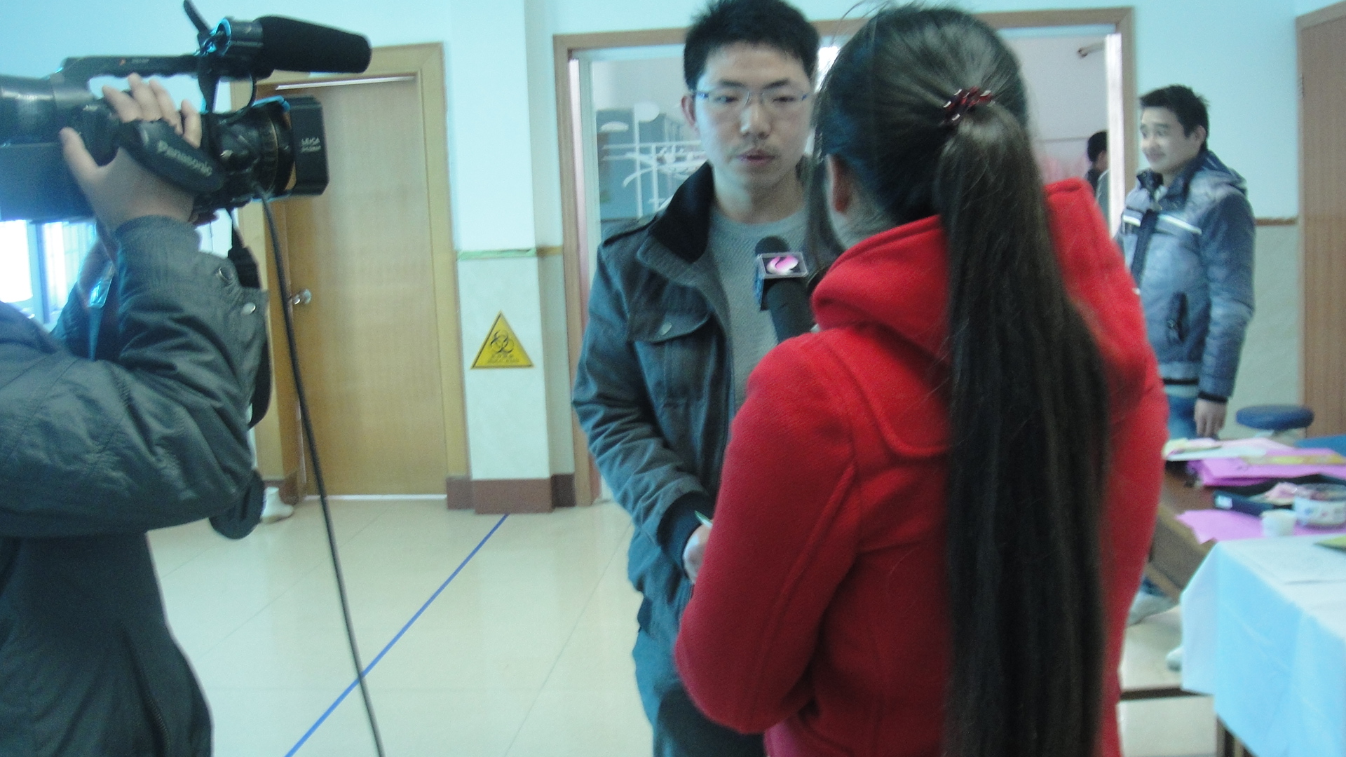池州电视台采访献血学生孙岩正雄