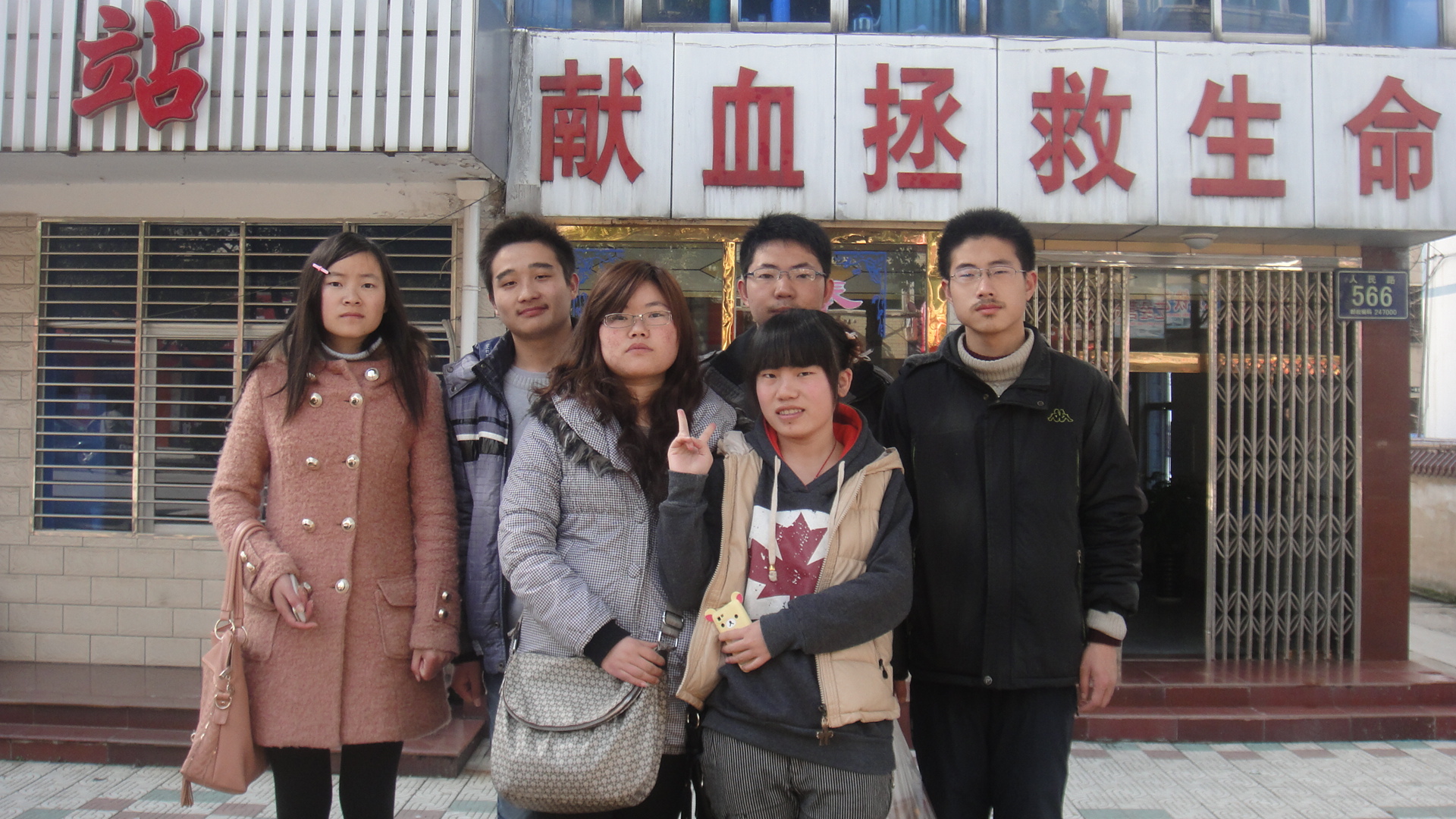 物流10级学生代表在池州血站门口