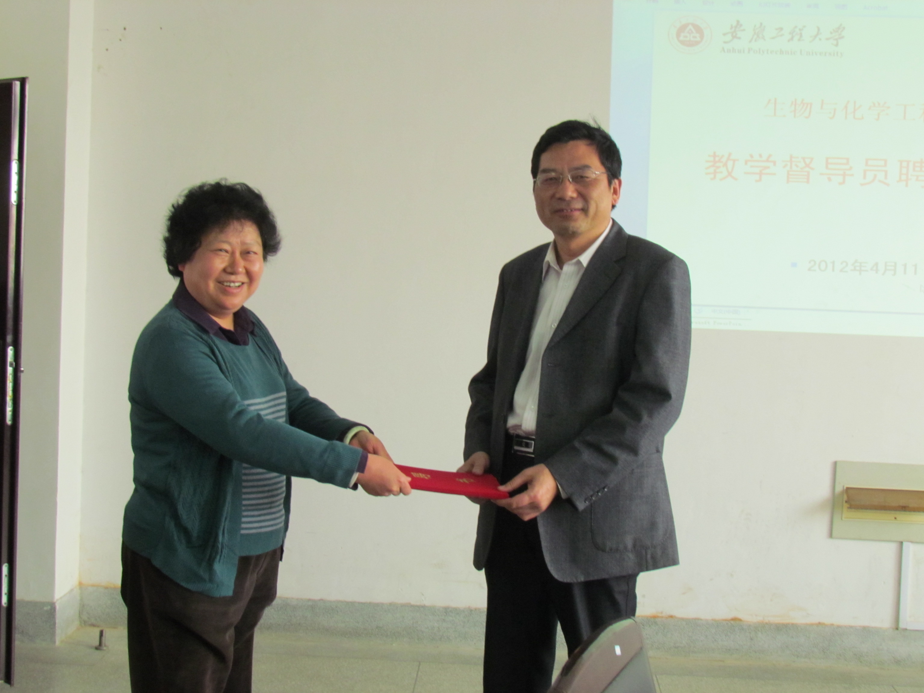 生化学院于2012年4月11日下午,在学院会议室举行了首届教学督导员聘任仪式,仪式由学院副院长