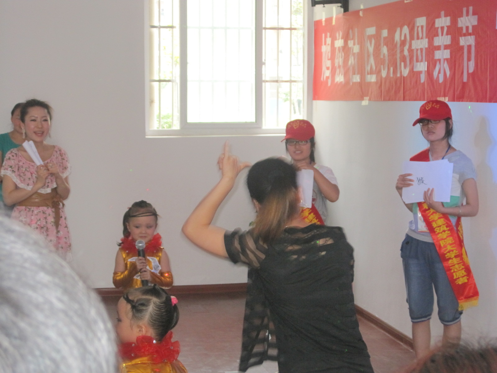 五月情丰盈透亮,母爱深沉胜夕阳。下午两点五十分志愿者一行秩序井然的到达官陡文化站。在工作人员的安排后,所有志愿者按照工作要求开始了本次的志愿服务活动。活动在鸠兹幼儿园小朋友的舞蹈中拉开帷幕。热情洋溢主持人首先对本次活动的安排做了详细的介绍,并组织现场互动,在场母亲分享了各自生活瞬间,而在母子互动谈生活环节,小朋友们踊跃发言,展现了深深的母子情深。在“猜词游戏”环节,在志愿者的协助下,主持人进行母女联合猜词游戏,现场观众被表演者的幽默动作逗得哈哈大笑,志愿者也帮助小朋友们书写祝福语并完成献花等。下午四点半,官陡街道的母亲节活动在志愿者的协助下圆满结束。看到在场母亲一个个洋溢着幸福的笑脸,志愿者不仅感受到活动的愉快,母爱的伟大,而他们的工作也得到了官陡工作人员的由衷感谢,志愿者用自己的行动让“母爱无疆”再一次在流淌在所有人的心间。