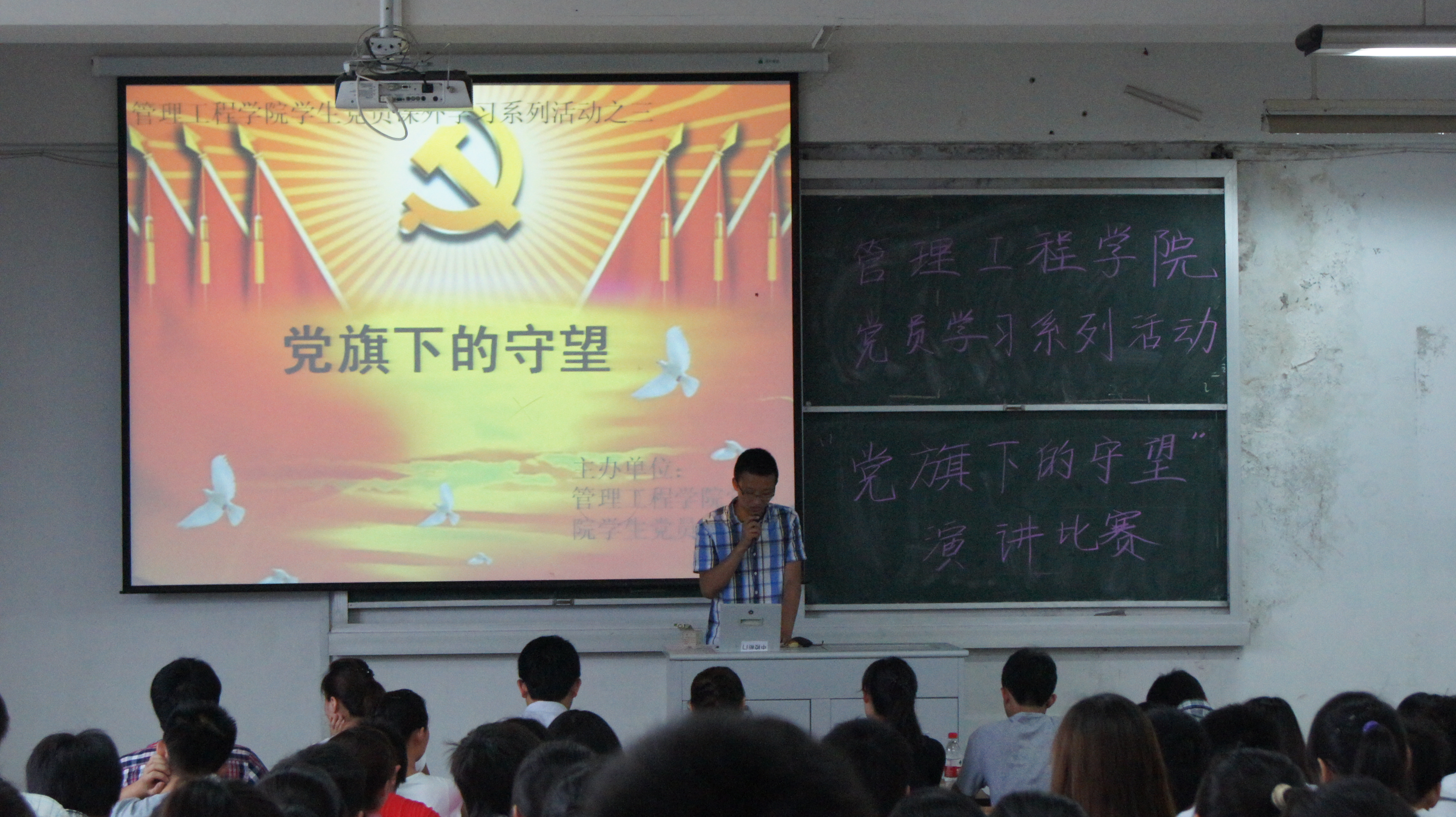此次活动是管理工程学院学生党支部举办的课外学习系列活动之一。活动的主题是“党旗下的守望”,要求就某一历史事件或历史人物进行评读。组织形式以党小组为单位的,每一个专业党小组派出一位选手参加演讲,共产生8支竞争队伍。演讲主题设置鲜明,立场坚定。活动的过程中,选手们的表现优异,演讲慷慨激昂,精彩纷呈。主题《人民的总理——温家宝》的演讲,温婉深情,感人至深。温总理在任期间,农民免税种地,企业退休人员养老金实现了八连增,农村60岁以上老人拿到了养老金,汶川地震的回顾等等,件件事办到了人民群众的心坎上,让全体学生党员深为感动。主题《张学良的人生》,内容紧紧围绕主题,见解独到,内容充实具体,演示精美,积极与观众互动。张学良将军纯洁的爱国主义情怀,鞭策着学生党员为党和国家事业继续前进和奋斗。《我心中的毛主席》、《改革开放三十年》等其它6个主题等从多个角度解读了学生党员熟知但还不系统的理论和时事,生动而深刻地实现了学生党员教育和自我教育的良好结合。