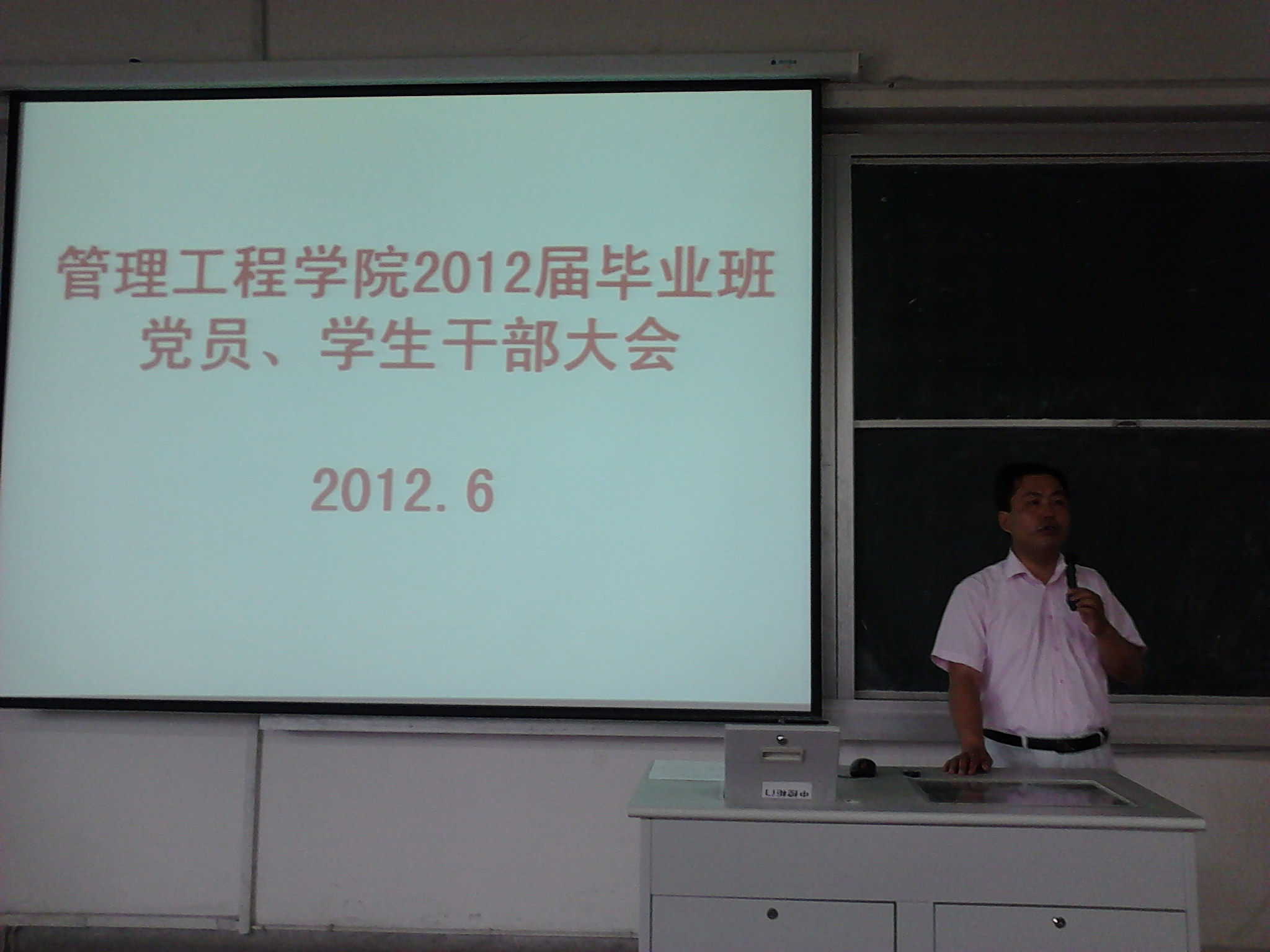 6月19日上午9时,管理工程学院毕业班党员和学生干部大会在2教207教室举行。学院党委书记汪张林、副书记何朝林和毕业班辅导员徐晓平、黄桂琴和沈明领老师出席,徐晓平老师主持大会。何朝林副书记首先就毕业生文明离校工作的具体安排向在座的同学做了详细说明,并对全体毕业班党员和学生干部提出了具体要求,要求大家带头做到文明离校,并且带动和监督身边的同学做好此项工作,给学弟学妹们做好榜样。接着汪张林书记发表了热情洋溢的讲话,他首先祝贺广大毕业班党员和学生干部顺利毕业,即将走上新的征程,接着汪书记对大家在四年中的辛苦工作表达了诚挚的感谢,感谢同学们为学院工作所做的无私的奉献。最后结合毕业生文明离校工作,汪书记提出了几点殷切的希望。管理工程学院毕业生文明离校工作已经进入了最后阶段,此次党员学生干部大会的召开,势必将为学院最终顺利完成今年毕业生文明离校工作奠定扎实的基础。