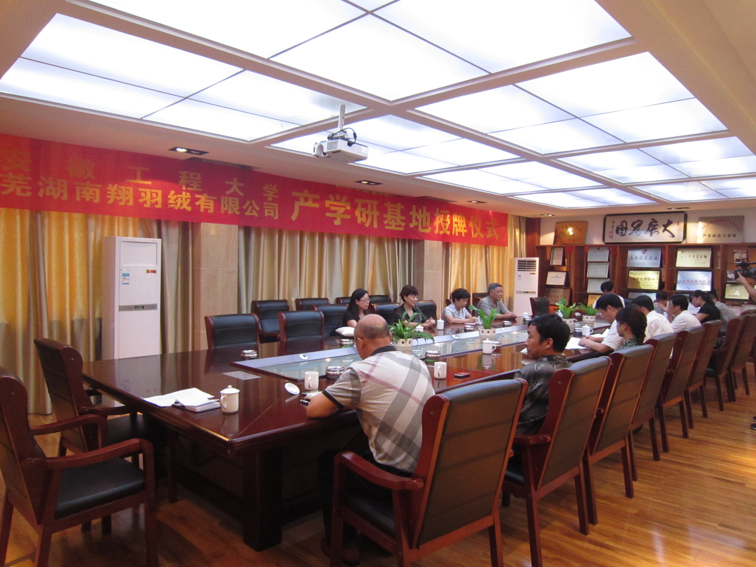 芜湖南翔羽绒有限公司是国家级高新技术企业、安徽省农业产业化龙头企业、安徽省民营科技企业。公司现拥有国内先进的水洗羽绒、羽毛生产线6条;全套羽绒羽毛检测设备和羽绒制品加工设备200余台。具备年精洗加工各类羽绒羽毛3000吨、羽绒制品100万件套的生产能力,是皖南地区最大的羽绒、羽毛及羽绒制品专业生产厂家。目前,纺织服装学院与芜湖南翔羽绒有限公司在学生实践性教学、申报省级工程技术中心、羽绒服及羽绒制品的开发等方面建立了良好的合作关系。