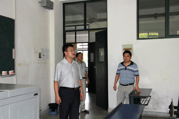 831下午,副校长叶常林在教务处处长陶庭先的陪同下到部分教学场所检查开学准备情况。教务处质量科孙宏义科长、教务科任家钱科长陪同检查。
