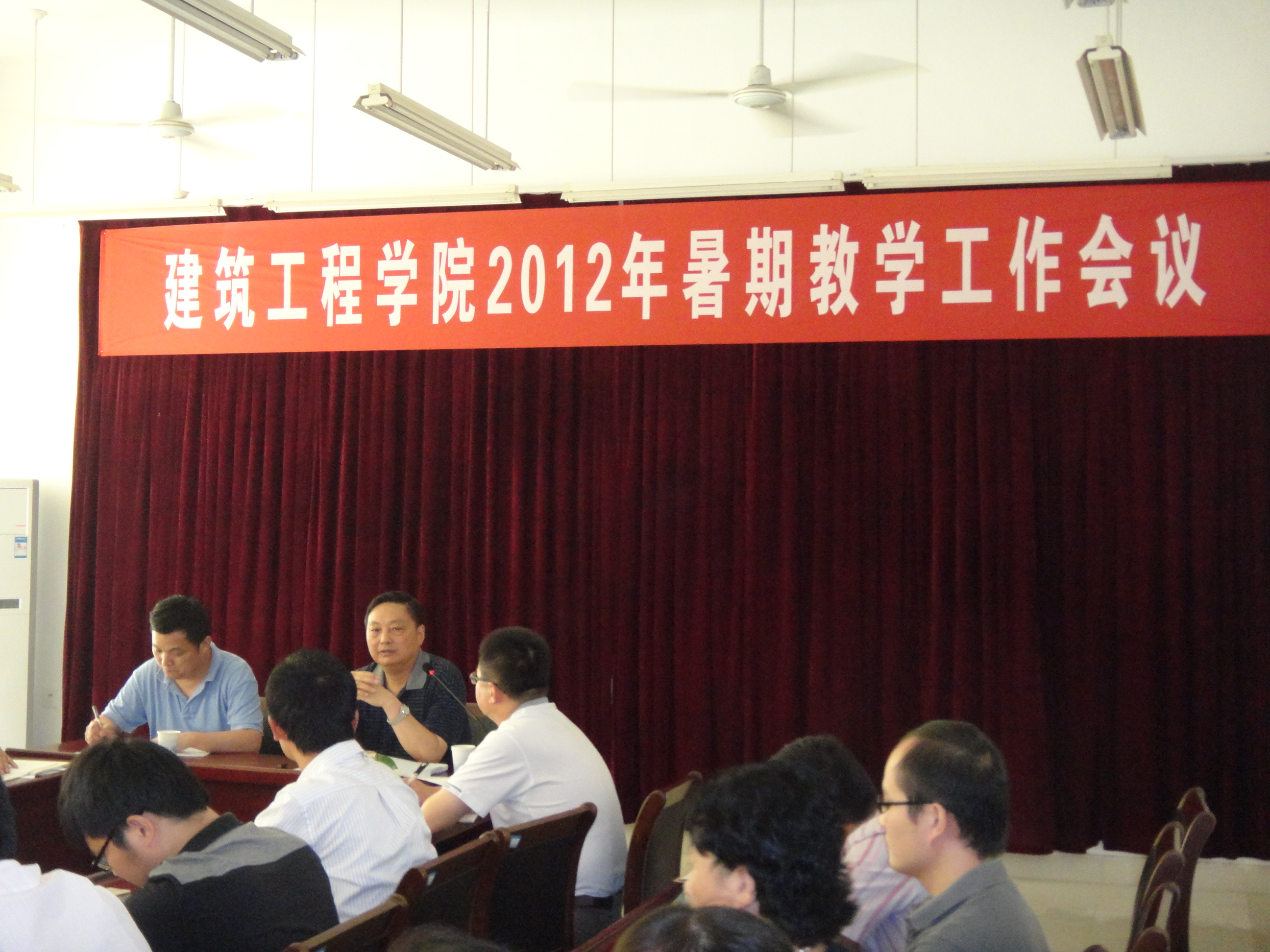 为贯彻落实2012年安徽省高校教学工作会议和学校2012年暑期教学工作会议精神,8月29日,建筑工程学院组织召开2012年学院暑期教学工作会议。会议主题是:认真贯彻落实学校教学工作会议精神,全面提升高素质应用型人才培养质量。校长干洪、教务处处长陶庭先应邀出席,党总支书记徐达奇、院长陆峰、院党总支副书记李烨和全体教职工参加会议,会议由李烨主持。