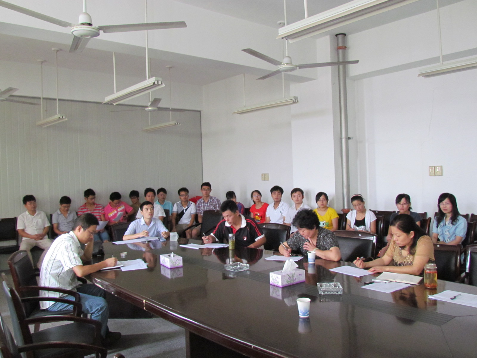 为贯彻落实学校教学工作精神,根据校研字【2012】10号文件“关于开展研究生学位中期检查工作的通知”的要求,生物与化学工程学院2010级研究生学位论文中期检查工作于8月31日圆满完成。10级全体硕士生、相关研究生导师和研究生秘书分组参加了此次中期检查。