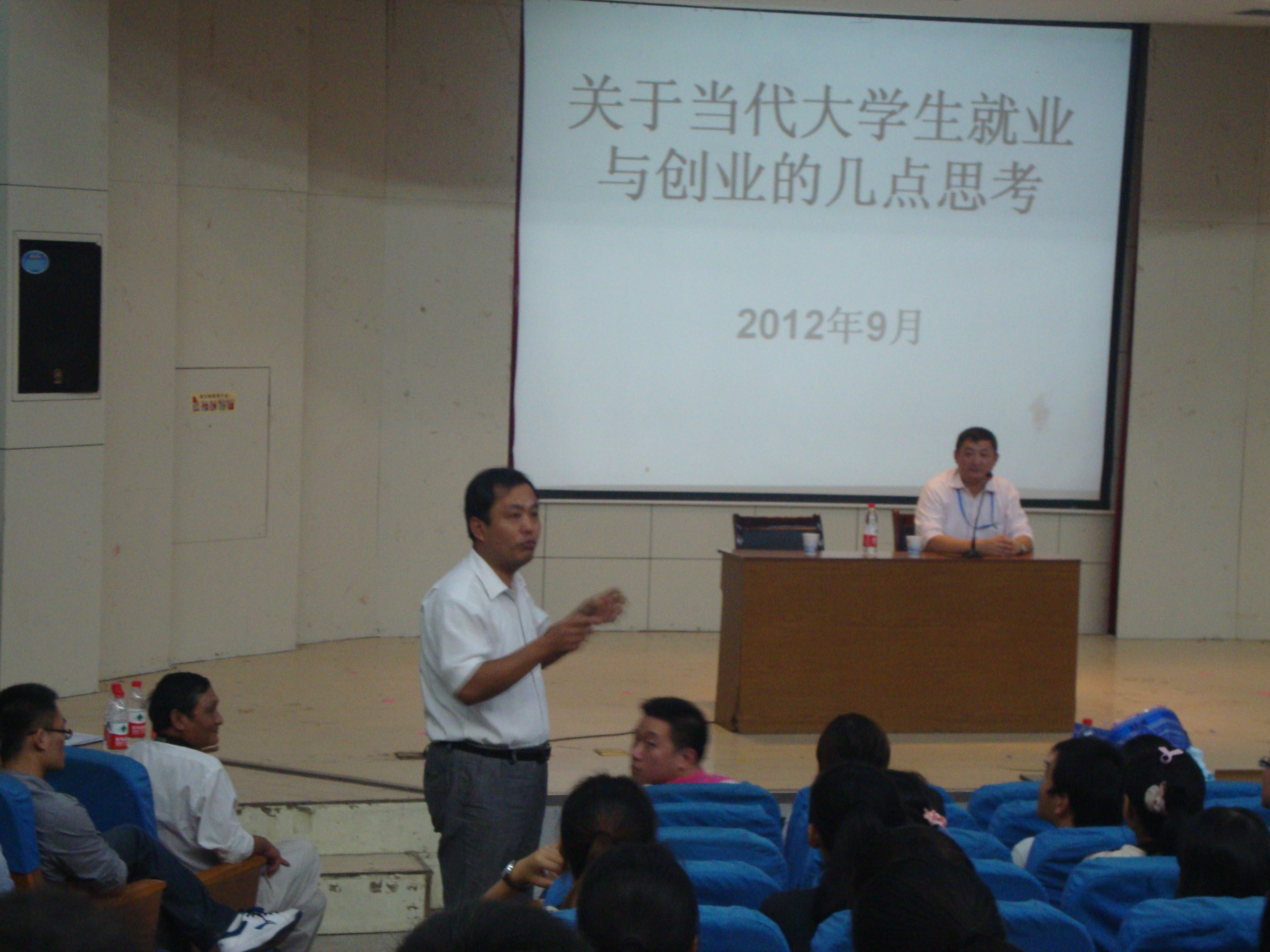 921下午,应管理工程学院邀请,上海奥诺康生物科技有限公司董事长许在学术报告厅给管理工程学院2013届毕业生做了一场《关于当代大学生就业与创业的几点思考》的讲座,讲座由学院党委副书记何朝林教授主持。