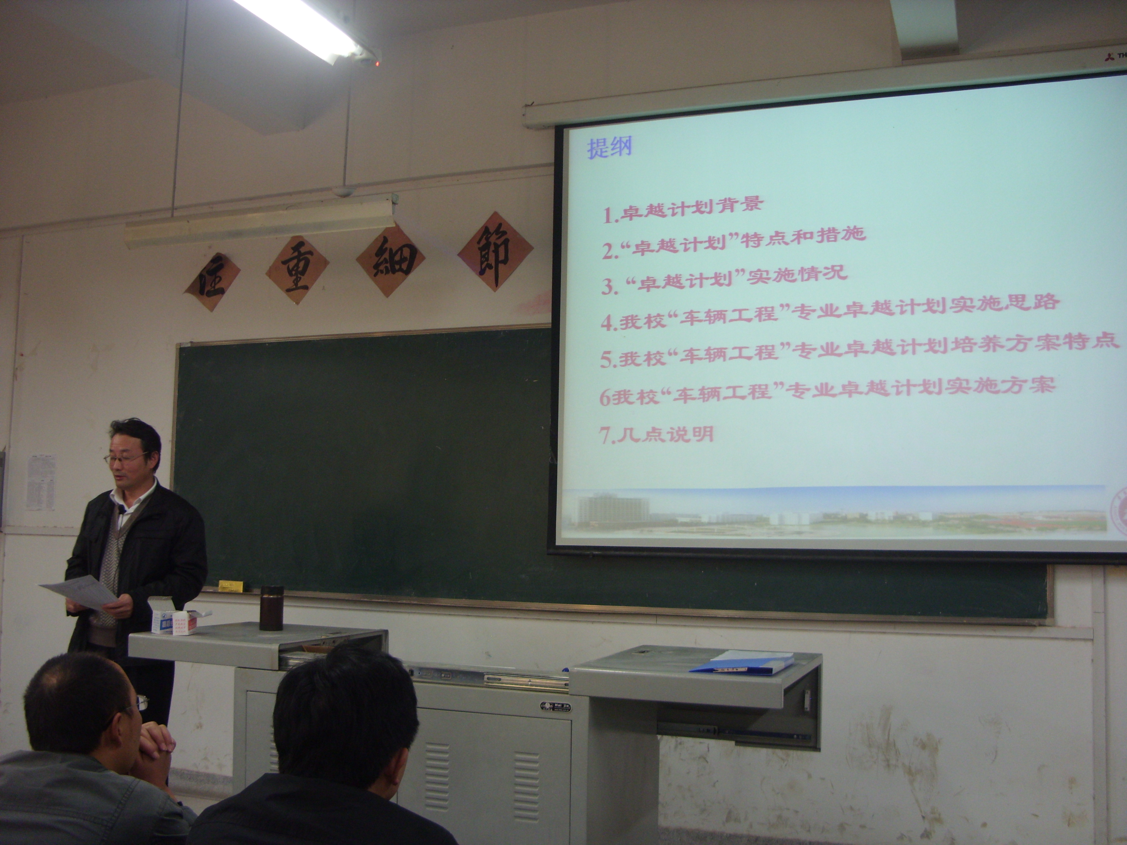 会上,许德章详细介绍了我校车辆工程专业卓越工程师计划培养目标、培养方案、实施方法和车辆工程专业卓越班组建方案。针对卓越计划人才培养模式特点,许德章特别强调学习的主动性、自觉性,以及探索精神的重要性,并做好吃苦的思想准备,努力把毕业生培养成高素质应用型人才。