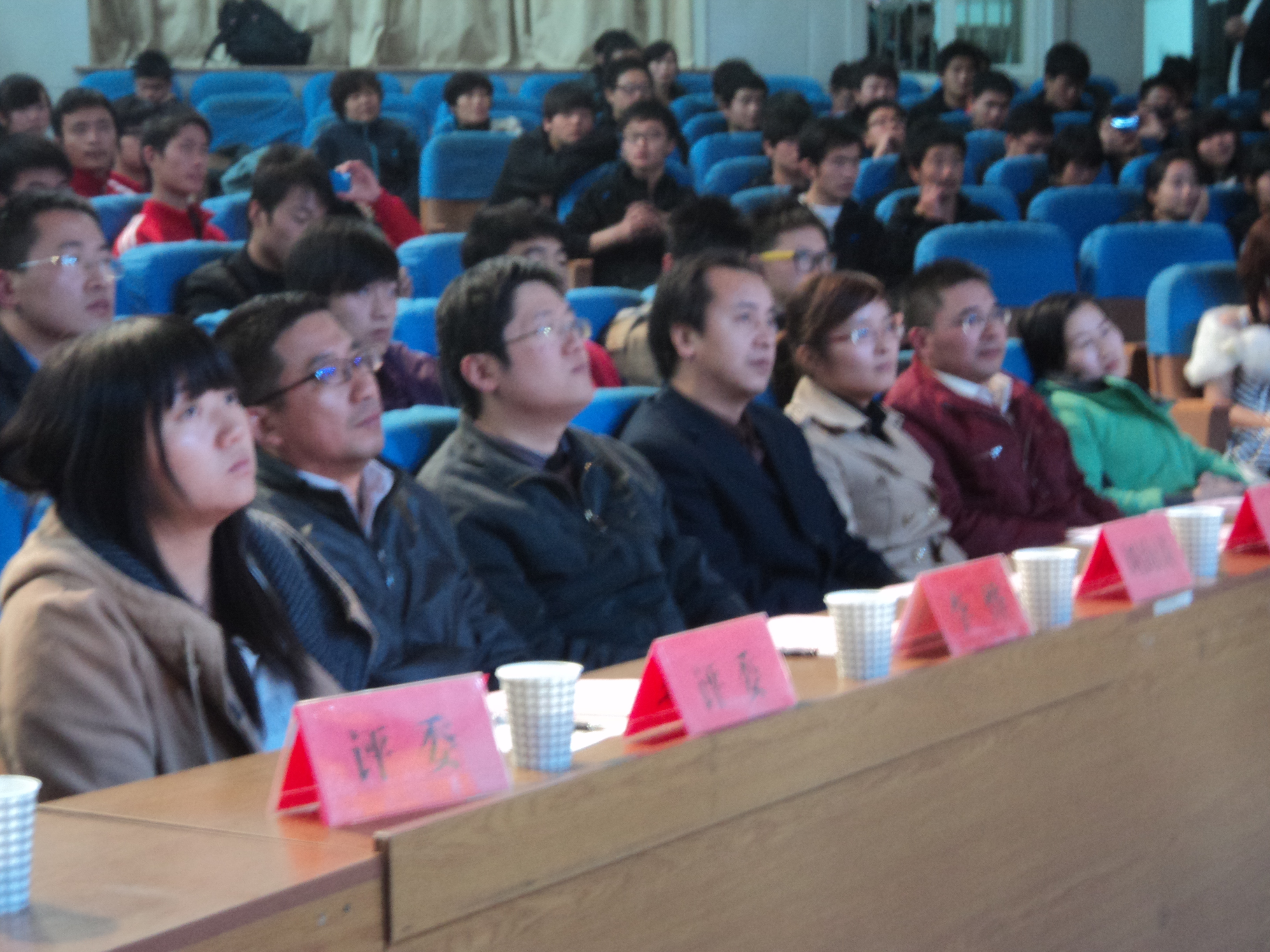 为歌颂我们伟大的的祖国,迎接党的第十八次全国代表大会胜利召开,由建筑工程学院团总支、学生会举办的“唱支红歌给党听,喜迎党的十八大”2012级新生红歌大合唱比赛经过预赛的激烈角逐,决赛于11月7日晚7:00在学术报告厅拉开帷幕。学院党总支副书记李烨、辅导员刘海涛、赵宏、韦学玉、董芬、李茜、王昌胜以及专业课教师王涛观看了比赛。特邀各兄弟学院文艺部部长担任此次大赛评委。