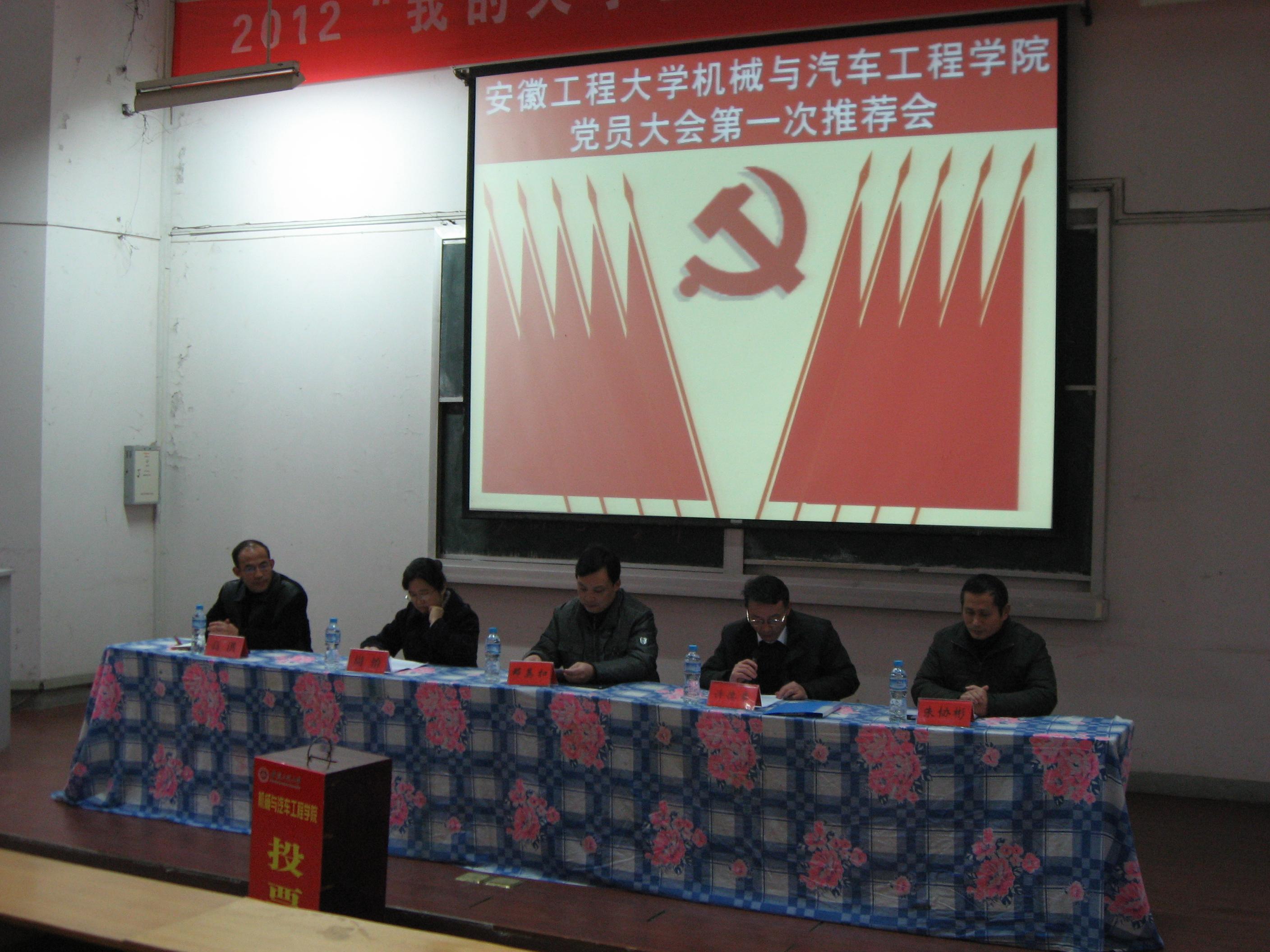 2012年11月26日下午,机械与汽车工程学院在二教报告厅隆重举行了党员大会第一次推荐会。出席本次大会的有机械与汽车工程学院党委书记邓英扣、院长许德章、党委副书记周怡和副院长高洪、朱协彬,参加会议的还有我院全体师生党员,会议由邓英扣主持。