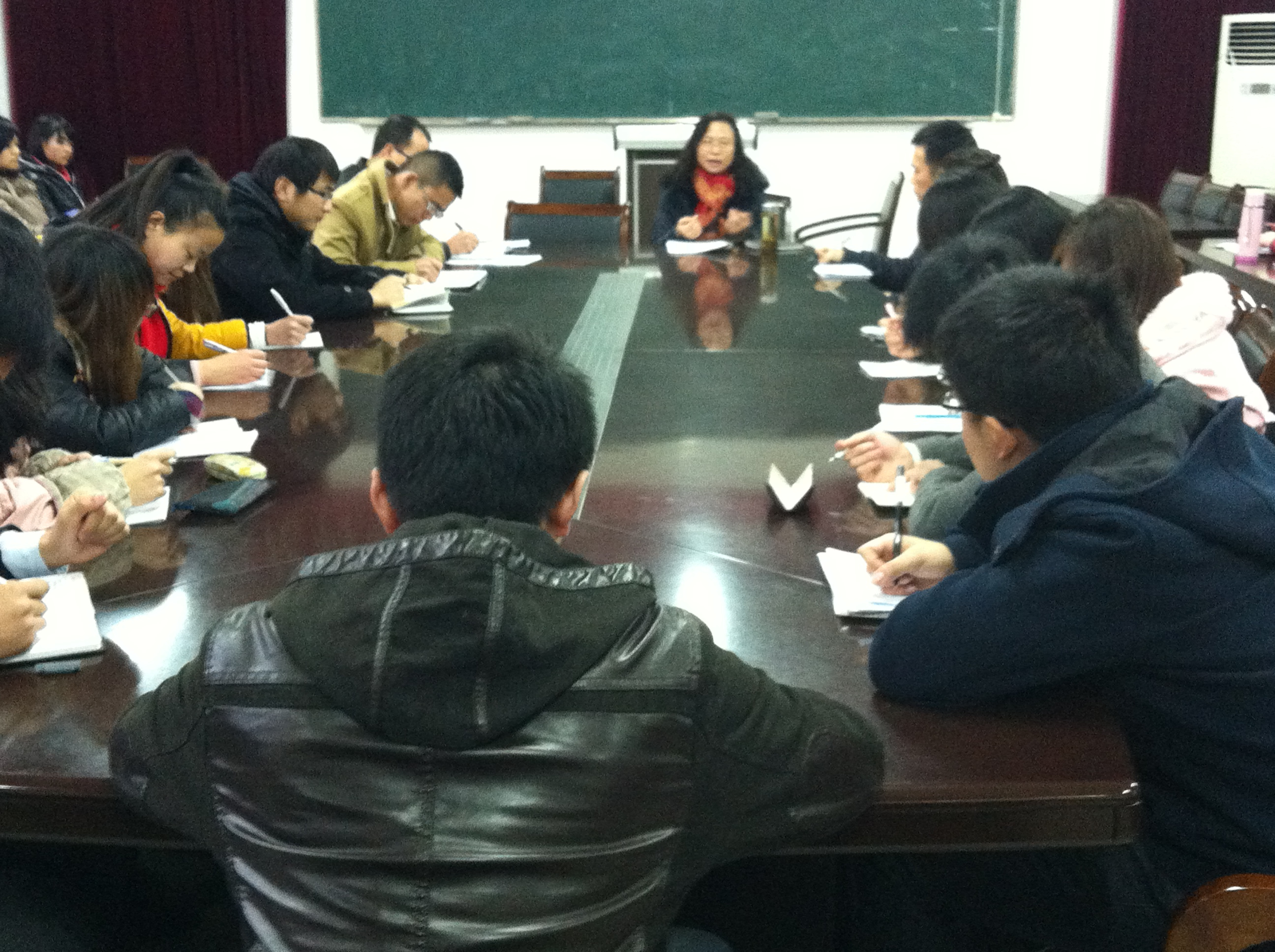 123下午,外国语学院学生党支部召开学习党的十八大精神报告会。院党总支副书记谈丽华作学习党的十八大精神专题报告,院团委副书记余本祺以及全体青年学生党员聆听了报告。会议由辅导员李飞主持。