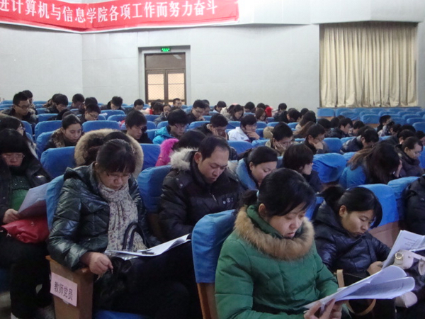大会在雄壮的国歌声中拉开帷幕。马健同志代表学校党委发表了热情洋溢的致辞。他指出,在全国上下深入学习贯彻党的十八大精神之际,计算机与信息学院召开党委换届选举党员大会。这既是学院建设发展进程中的一件大事,也是学院全体师生党员政治生活中的一件喜事,谨向大会的召开表示热烈的祝贺!他指出,近年来,计算机与信息学院党委认真贯彻学校党委工作部署,紧紧依靠广大党员和全体师生,抢抓机遇,锐意进取,学院党的建设和各项事业取得了较大成绩。面对新形势、新任务,在学校高水平大学建设征程中,计算机与信息学院要紧紧把握“围绕中心抓党建,抓好党建促发展”这一总的要求,着力推动学院事业发展;要紧紧把握“人才培养”这一根本任务,着力提高人才培养质量;要紧紧把握“重基层、打基础”这一重要支撑,着力提升党建科学化水平。