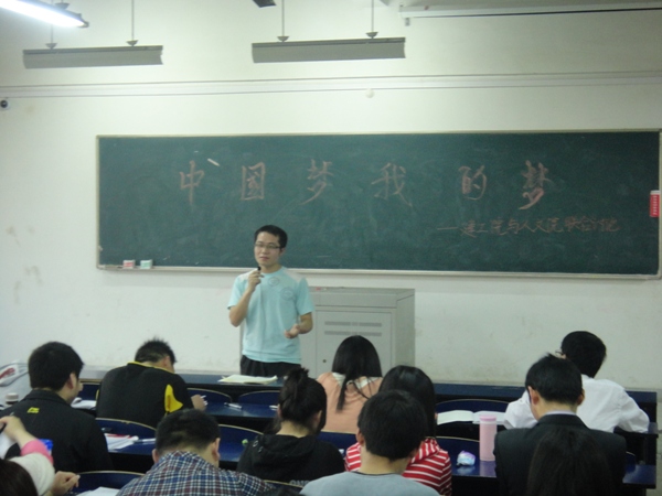 4月24日下午,建筑工程学院分党校与人文学院分党校携手在六教211教室举办了关于“中国梦·我的梦”主题交流活动,这是学院分党校在开展“中国梦·我的梦”主题演讲比赛基础上,为了进一步深化对中国梦的认识和理解而在两个学院分党校举行的预备党员之间的思想交流。