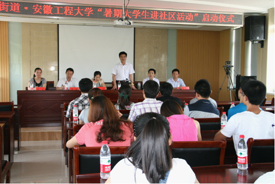 工作人员宣布此次参加社会实践的大学生到各社区的分配方案后,张芳同学代表全体志愿者发言,表示会十分珍惜这次机会,会本着“奉献、友爱、互助、进步”的志愿者精神,努力实践、回报社会。高俊扬、余靖分别代表清水街道和鸠江区团委对前来社区开展暑期社会实践和志愿服务的大学生们表示热烈的欢迎,他们介绍了清水街道经济社会发展状况,和同学们交流了到基层社会实践的看法和认识,并对同学们提出殷切希望——在志愿服务中努力锻炼自己,为自己生活的家园贡献自己的力量。