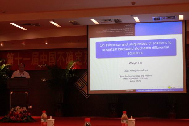 7月27日至31日,由中国运筹学会不确定系统分会主办的第十一届中国不确定系统年会暨第十五届中国青年信息与管理学者大会在河北工程大学召开。本次年会旨在推动不确定理论、智能计算及应用的发展,加强数学科学、运筹学、信息科学及管理科学等学科交叉领域的研究,交流总结近年来我国研究工作者的最新成果,研讨未来发展趋势。来自清华大学、北京大学、天津大学、上海交通大学、美国伊利诺伊大学、中国科学院等50余所高校或科研单位的180余名代表参加了本次会议。会议期间,来自国内外20余个省、市、州的48位代表做了17场大会报告及31场小组报告。我校费为银教授受邀作为本届会议的金融工程领域主席,并作了题为《On Existence and Uniqueness of Solutions to Uncertain Backward Stochastic Differential Equations》的大会报告。