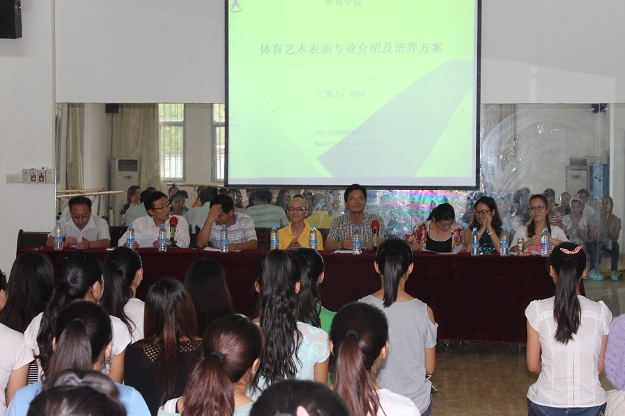 典礼在庄严的国歌声中开始。院党总支书记文才新首先表示对新同学的欢迎,并勉励新同学要怀有梦想,不忘感恩。胡好简要介绍了体育学院发展史以及体育表演专业概况,并且介绍了培养方案和办学特征等。项宁满怀感情的对同学们致辞,希望他们能发挥以及展现自己的特长和优势。专业课徐玲老师则把同学们比喻成海绵,希望同学们虚心的学习知识,像海绵吸水一样,让自己充实饱满。