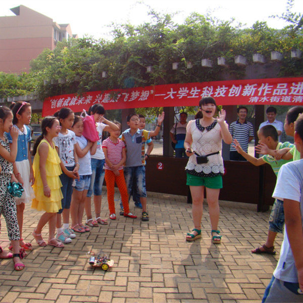 914日,电子科技协会的同学们在校团委的组织下,来到芜湖市清苑社区,开展“科技成就未来,兴趣放飞梦想”大学生科技作品进社区活动。在社区广场,50多位小朋友团团围住在场的大学生们,兴高采烈地观看着大学生们带来的科技作品,争先恐后地踊跃参与互动演示。“你们下次什么时间来我们这给我们讲课?”、“下次可不可以教我们制作科技作品?”在活动接近尾声的时候,小朋友们依然紧紧围绕在志愿者的身旁,希望他们能够带上更多更好的科技作品来到社区。