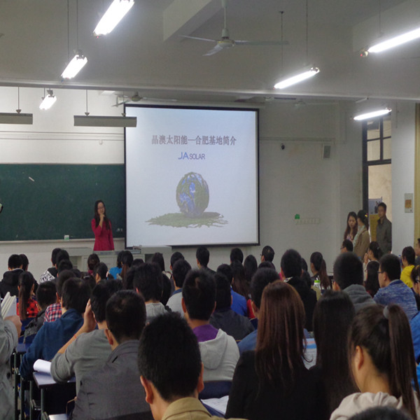 在招聘会现场,晶澳公司代表首先感谢了大家对本次招聘会的积极参与。随后,企业代表用一组精美的PPT对企业作了详细的介绍,并对应聘者比较关心的薪资,福利等问题作出了解答,希望应聘者能与晶澳共同成长。毕业生认真的态度、阳光的微笑、自信的表情、坚定地眼神给用人单位留下了深刻的影响,公司表示对简历进行初步筛选后将通知同学们进行面试。