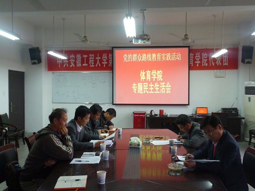 1114,体育学院党总支召开党的群众路线教育实践活动专题民主生活会。校党委委员、纪委书记汪奇燕,组织部副部长王勇智到会督查指导。体育学院党总支及各支部书记参加会议。会议由党总支书记文才新主持。