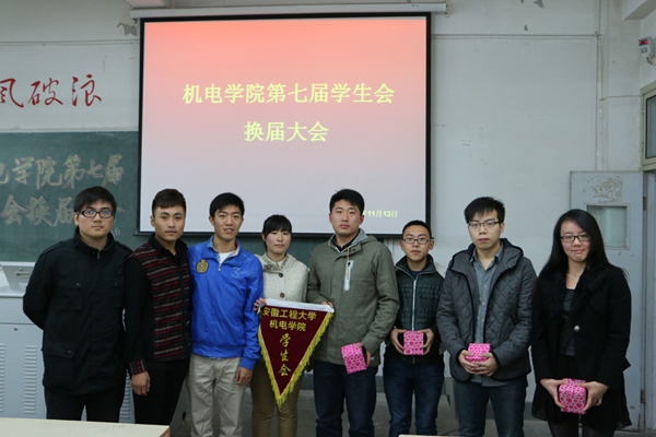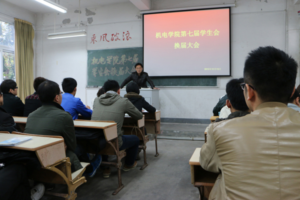 1113下午,机电学院第七届学生会换届大会在2J102教室举行。学院党委副书记郭全根、团委副书记朱文明、辅导员范同军、第七届学生会主席团及各部门主要负责人、第八届学生会全体成员参加了大会。会议由朱文明主持。