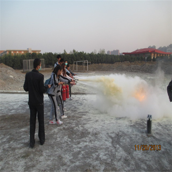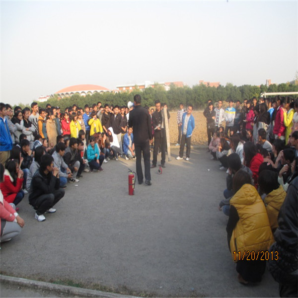 在从演练策划到正式演练的各个阶段,学院进行了周密安排,认真审定演练方案,对演练工作进行部署,保卫处张翀给学生讲解了消防栓、消防枪的使用方法和掌握火场逃生基本技巧,提高自我安全意识,从而化解危险;保卫处李岗指导学生如何使用干粉灭火器以及注意事项;随后,每位同学亲自体验了干粉灭火器灭火过程。