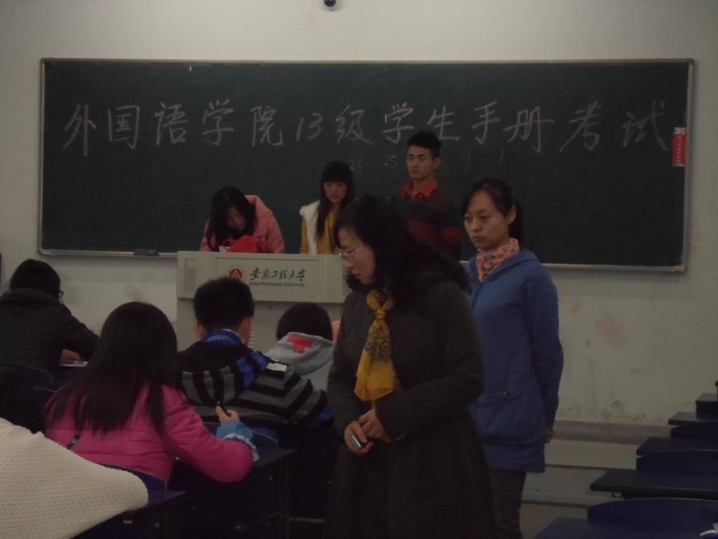 为了督促新生尽快熟悉学校的各项规章制度,尽早融入新的学习和生活环境,1020日下午,外国语学院于6201202203204 教室举行了新生《学生手册》知识竞赛。外语学院大一全体新生(含专升本)均参加了此次竞赛。比赛期间,院党总支副书记谈丽华和院团总支副书记余本祺也来到教室查看同学们的参赛情况。