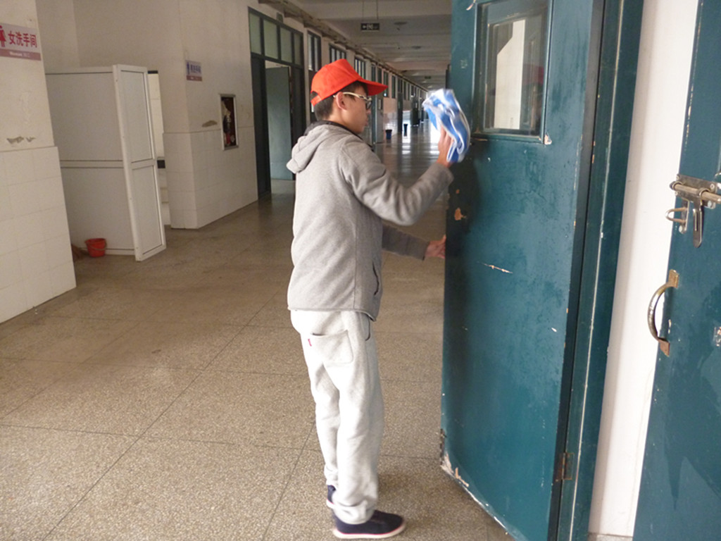 上午,学院全体青年志愿者携带工具在5教门前集合。惠凯华对志愿者进行分组和具体分工后,各分组负责人便带着队员奔赴“战场”,在各自的任务区里忙碌起来。队员们态度认真,工作热情高涨,对教室的桌椅、讲台、黑板及门窗进行认真的擦洗,并对教室地面的垃圾进行了全面处理。经过一个小多时的辛苦劳动,5教的志愿服务活动全面结束,志愿者们又转战6号教学楼。整个活动结束后,惠凯华对本次活动作了简短的总结,各分队负责人和队员也交流了各自心得、体会。