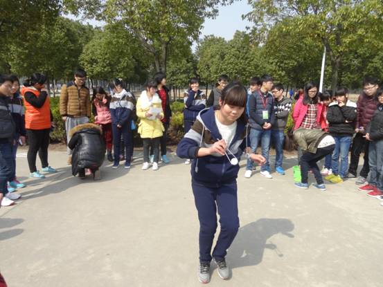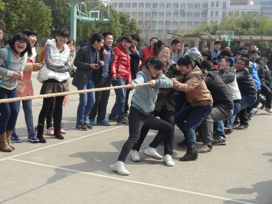 此次室外活动共设有跳绳、拔河、踢毽子等八项趣味运动比赛。跳绳比赛时,那此起彼伏的身影,和谐轻快的脚步是场上一道靓丽的风景,拔河比赛中,针锋相对的气氛,蓄势待发的队友,热烈喝彩的观众似一幅热情的画卷;比赛中最让同学们激动的就是技术与运气并存的夹乒乓球的比赛,尽管选手们小心翼翼、绞尽心汁,依然很难完成任务,如愿以偿,只留的观众们一阵唏嘘和欢笑。下午四点整,“三七”女生节在一片活跃的氛围中圆满结束。