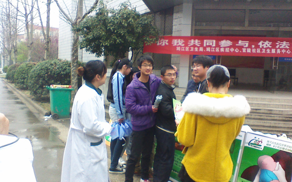 现场通过悬挂横幅、发放宣传资料、专家咨询和问卷调查等手段进行宣传。在宣传活动中我校广大师生积极参与,气氛非常活跃,宣传效果较好。