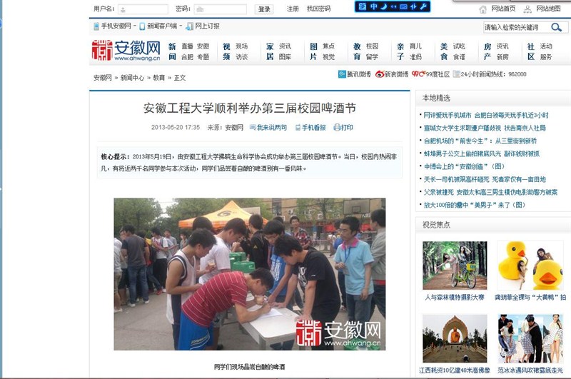 对此,《安徽网》、《安徽网报》、《安徽商报》等媒体都曾第一时间给予报道,随后,人民网、新浪网、腾讯网、搜狐网、网易网等数十家等媒体加以转载,这些关注与报道是对举办啤酒节活动的赞誉,更是对我院构建教学实训体系大力提升就业能力的肯定