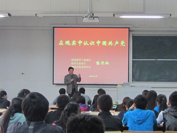 本次党课的主题是“在现实生活中认识中国共产党”张开炳以“怎么认识中国共产党?你们眼中的共产党是什么样的?”提问的方式引入主题。学员的感想不尽相同,给出的答案多种多样,但对党饱含的真挚感情却如出一辙。张开炳就同学们的回答,分别从中国共产党的性质、指导思想和中国共产党的历史和现实作用等方面,结合自己工作学习生活中的认识和感悟讲述了自己的见解。他提出全面正确认识中国共产党,既要有以马克思主义哲学和辩证唯物主义、历史唯物主义为思想基础的理性思考,也要有面对社会现实的感性认识。他鼓励入党积极分子努力加强学习,要发挥自己善于学习的强项,在大学阶段要力争在学业上有更好的发展;要在认真学习党的基础知识的同时,注重在学习生活实际中加深对党的认识,加强自身修养和党性锻炼。