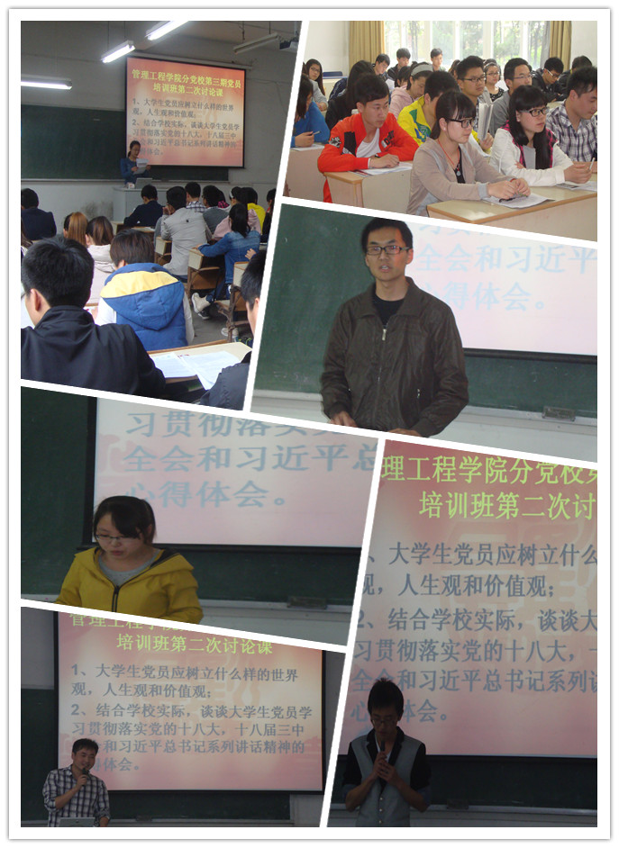 423下午,管理工程学院分党校第三期党员培训班第二次讨论课在2教103教室进行,讨论会由院团委副书记、第三期党员培训班班主任沈明领主持。