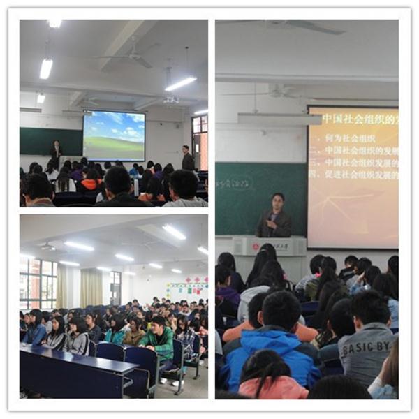 2014年4月16日下午,包先康博士在6教113举办“关于中国社会组织发展”的主题讲座。结合自己的学术研究,包先康从广义与狭义的角度分别介绍了社会组织的涵义,并将社会组织与政府组织等其他组织进行了区分,深入探讨了中国社会组织的发展趋势,就促进中国社会组织的健康发展提出了一些自己的观点。包先康将充实的研究成果与生动的语言结合起来,整场报告妙趣横生,带领同学们领略了社会组织的魅力。