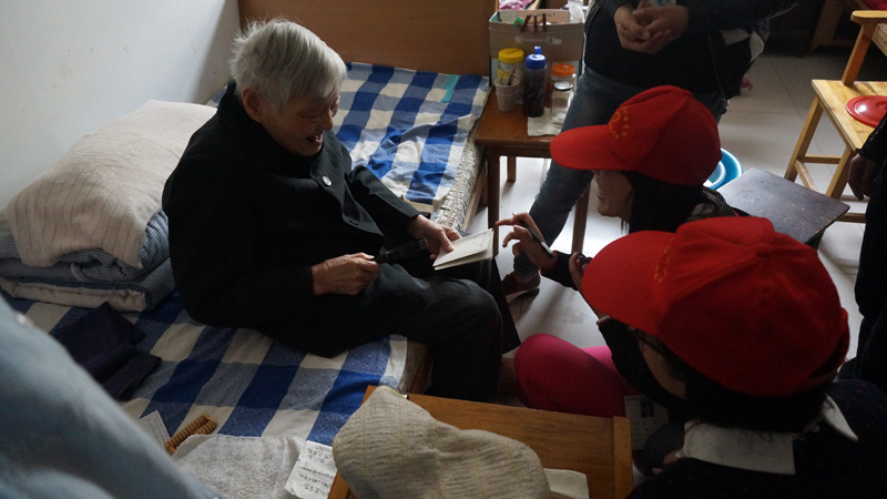 清晨,志愿者们带着“服务之心,关爱之心”搭乘公交车来到大沥敬老院。来到敬老院后,志愿者们就和老人们开始拉家常。大家或蹲或站在老人身边,一边跟老人谈心一边为老人捶捶背揉揉肩,气氛十分温馨、融洽。稍做休息之后,有的同学走进他们的房间,为他们带去自己的才艺表演;有的为他们打扫卫生;有的陪老人聊天,一些同学还为他们送上自己带来的礼物。同学们通过一系列志愿服务活动让这些爷爷奶奶们真切的感受到来自社会关爱。老人们的脸上带着微笑,高兴地听着同学们唱着歌,亲切地和志愿者们攀谈着……