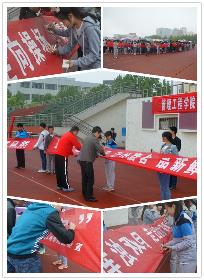 启动仪式结束后,部门和学院负责人郑重的在“三走”活动宣传横幅上签名,拉开了管理工程学院“三走”活动的序幕。