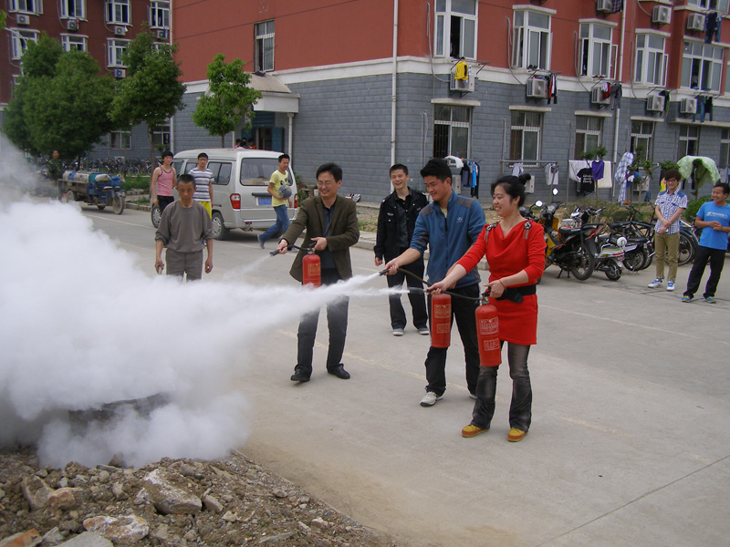 接着,按照预定方案进行了消防灭火实战演练活动。保卫处工作人员给同学们详细讲解了消防水枪和干粉灭火器的使用方法并做了操作示范。面对熊熊大火,同学们以小组为单位按照操作规程依序用灭火器对准火点认真进行了灭火实战演练。