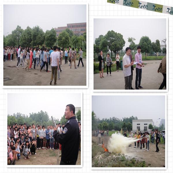 2014年的5月12日是我国第六个“防灾减灾日”。为提高学生的消防意识,提高学生在紧急情况下的应变能力,掌握消防知识,消除火灾隐患,5月14日下午,人文学院与校保卫处在五栋教学楼联合举行安全消防演练活动,200余名学生参加此次活动。