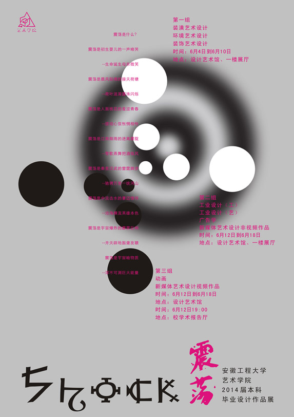 与往年只展出部分毕业设计作品不同,本次是全部毕业生毕业设计作品展,规模空前。展览共分三组:第一、二组在设计艺术馆以实物和展板形式展出,主要涉及艺术设计系、工业设计系、广告系各专业;第三组在校学术报告厅和设计艺术馆以视频形式展出,主要涉及动画系各专业。展览形式各异,色彩缤纷,充分展现出当代大学生对于艺术与科技、青春与理想的理解和诠释,同时也是学生四年专业学习以及设计创新与实践能力的集中展示。